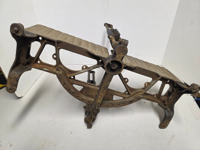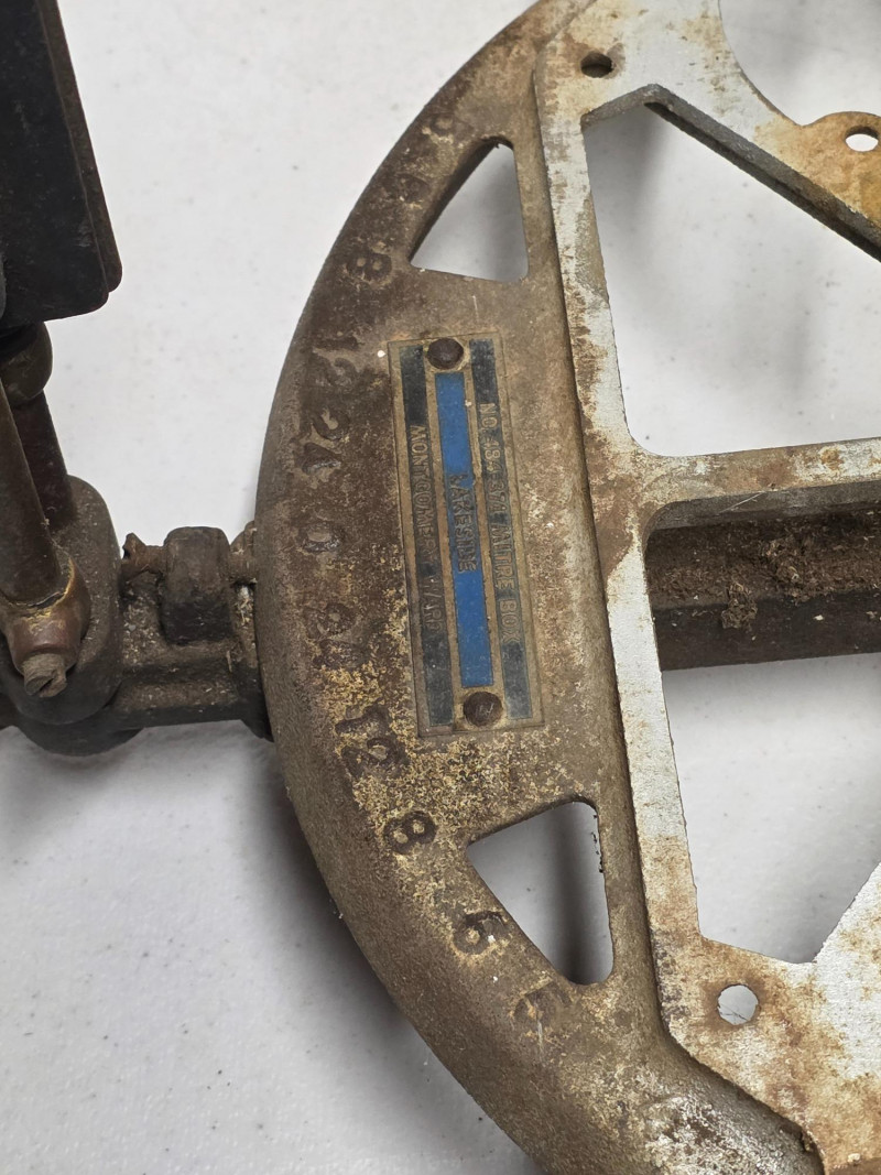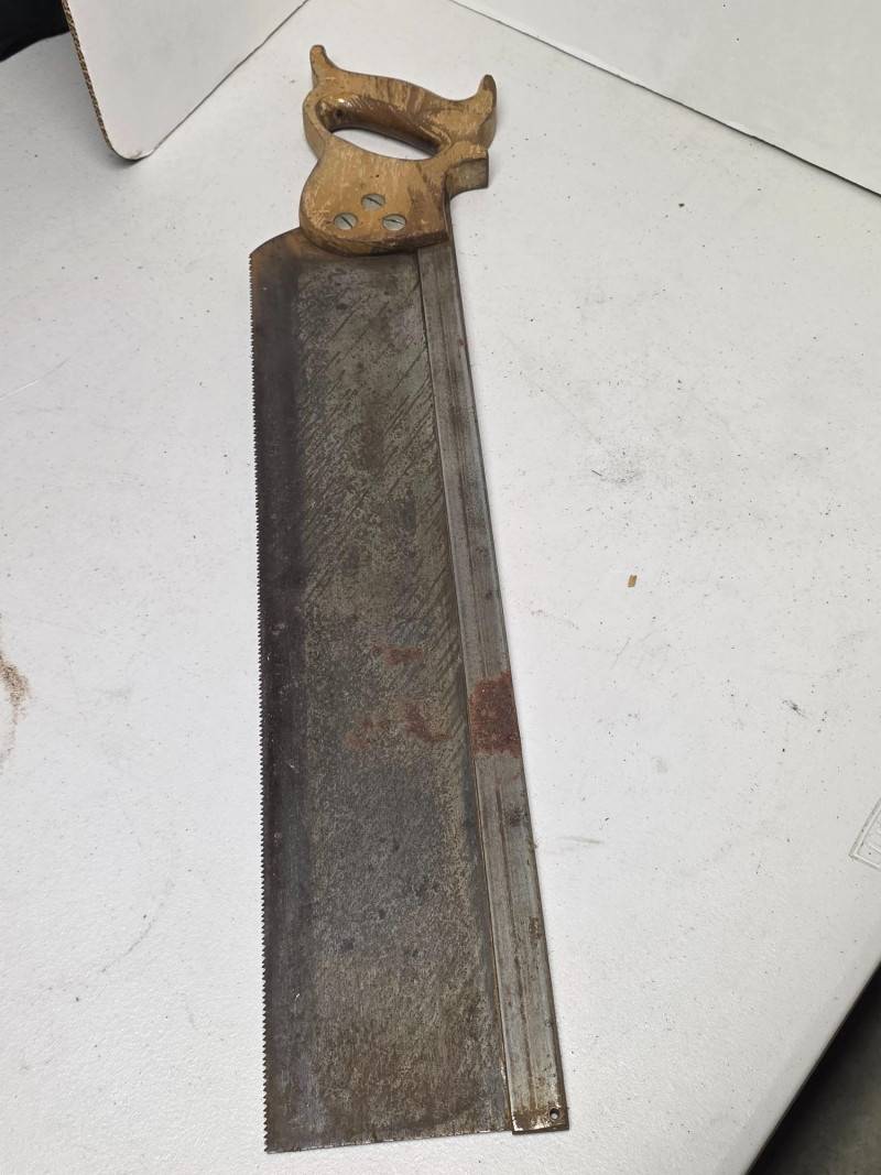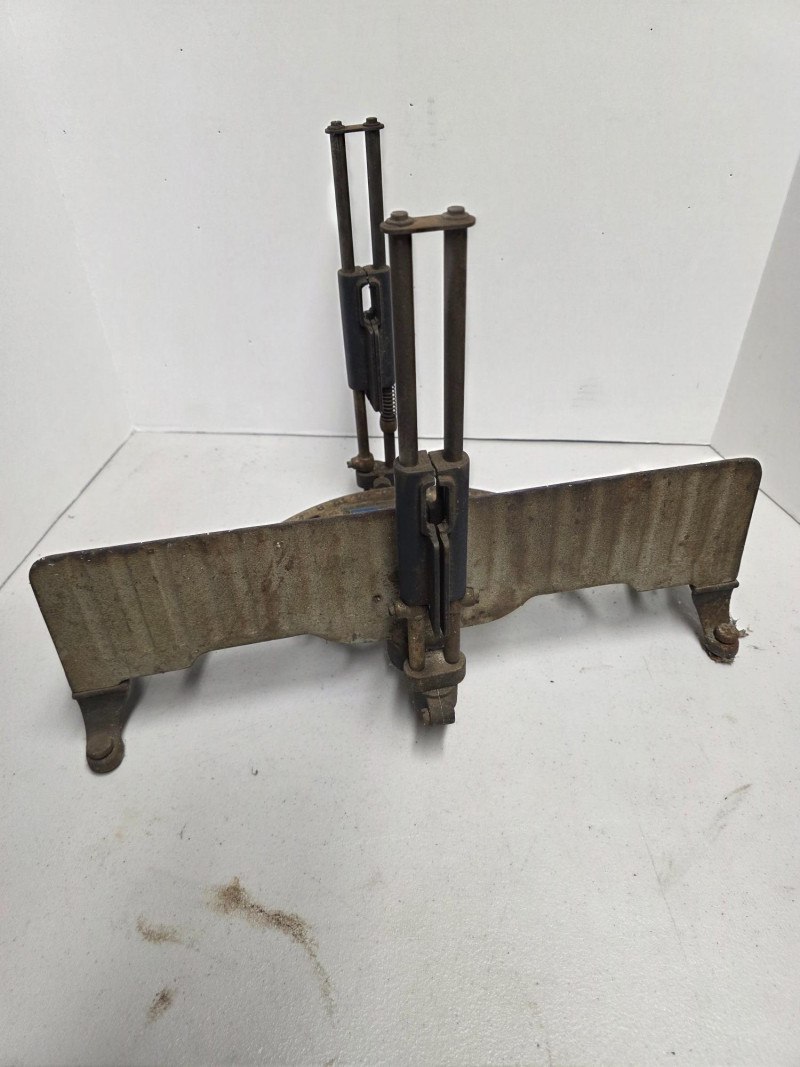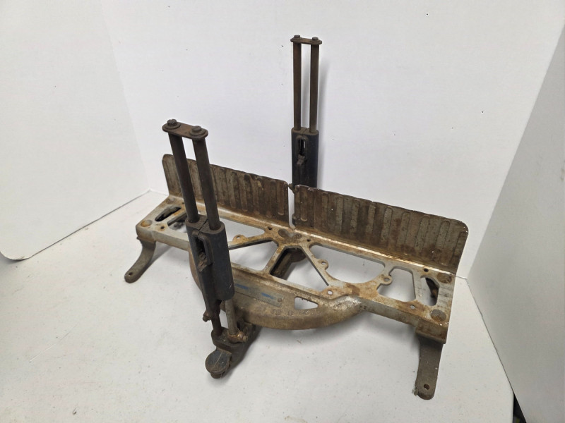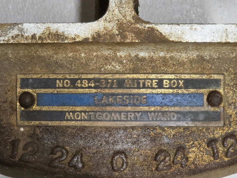 VIntage Lakeside Cast Iron Miter Box & 21" Miter Saw Lakeside (Montgomery Ward) Model #484-371 The tool is made of heavy-duty cast iron and features a bed for stabilizing stock, which is typical of models from the 1900s to 1950s It is used by woodworkers to hold a saw in a precise position to make accurate angle cuts for projects like framing or molding Miter saw: 27.5"L x 7.5"W (blade 21" long) Miter box: 13"T x 18"W x 12"D