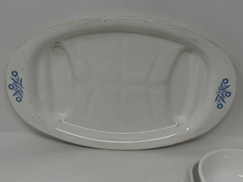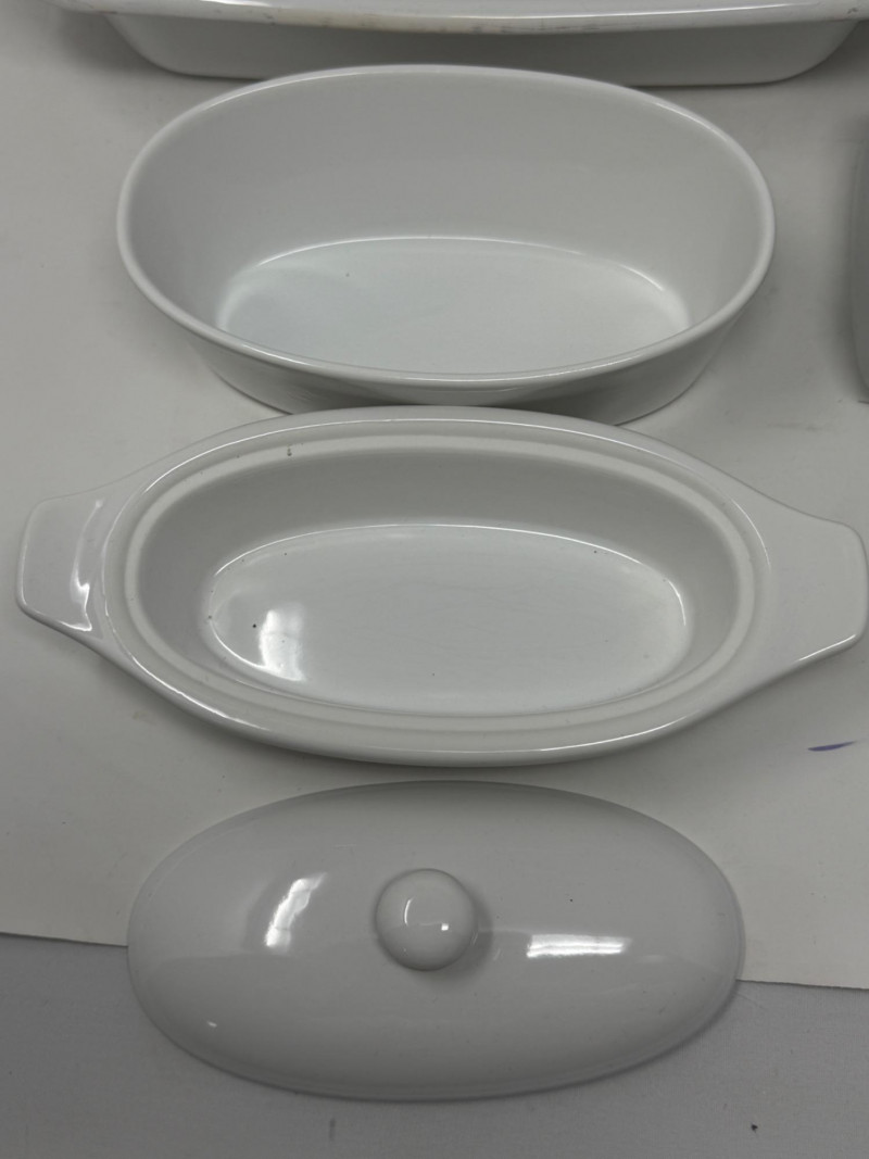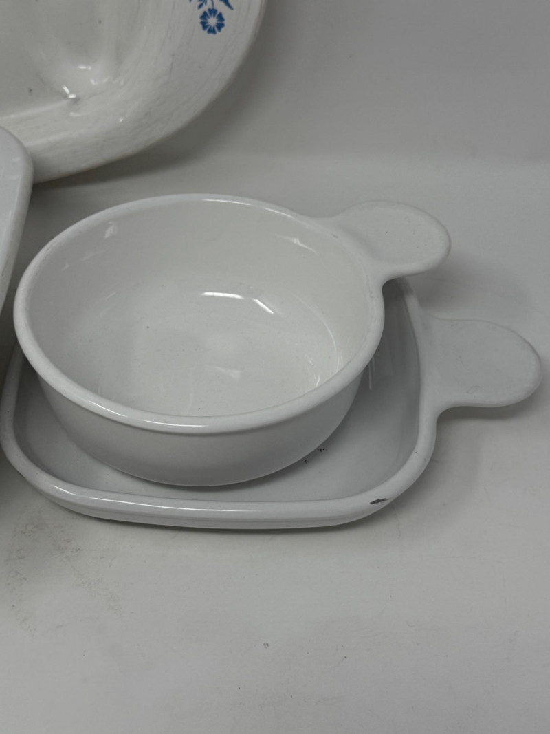 Ironstone China - Corning Ware Plus Basics Coning Ware Roasting Platter and 1.5 qt lidded casserole dish. Lidded butter dish Ironstone China dish 8.5”x11” Baker Handle bowl and shallow plate.