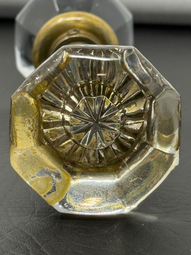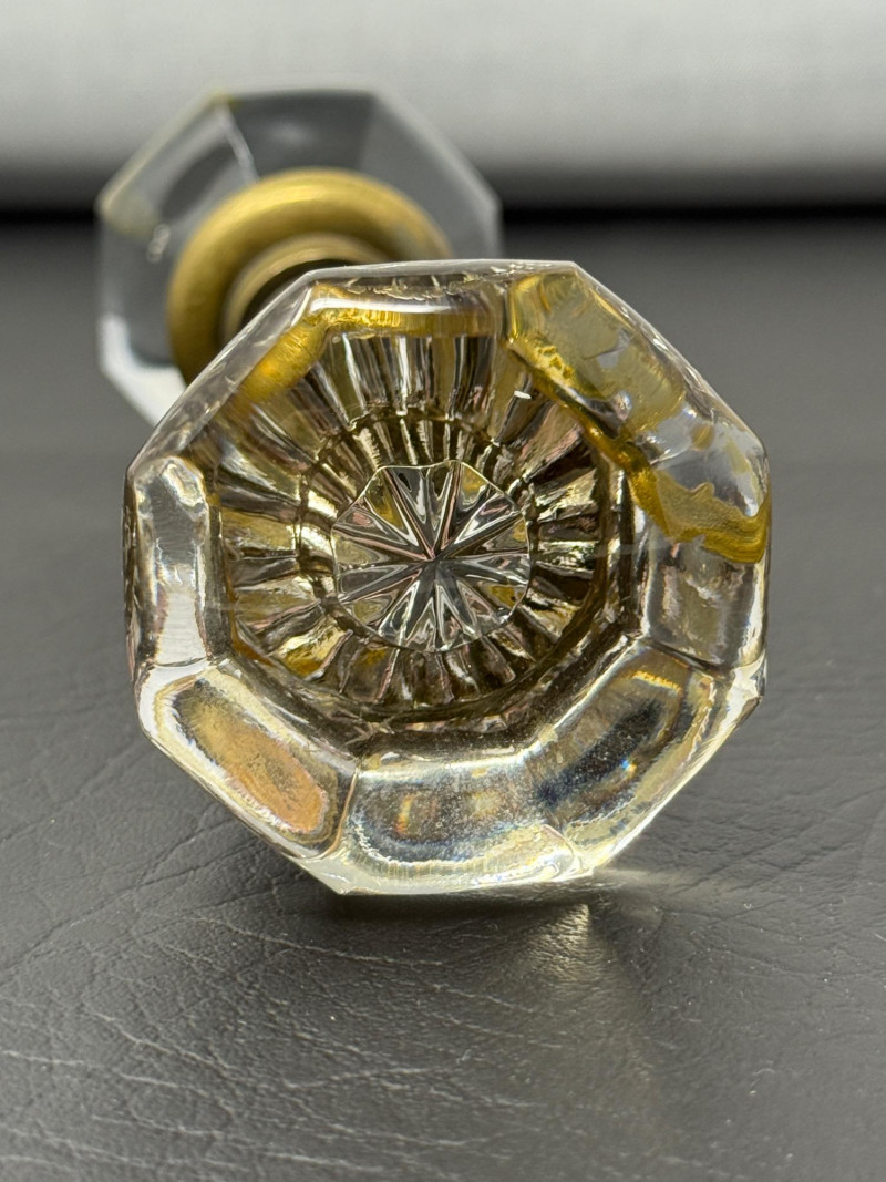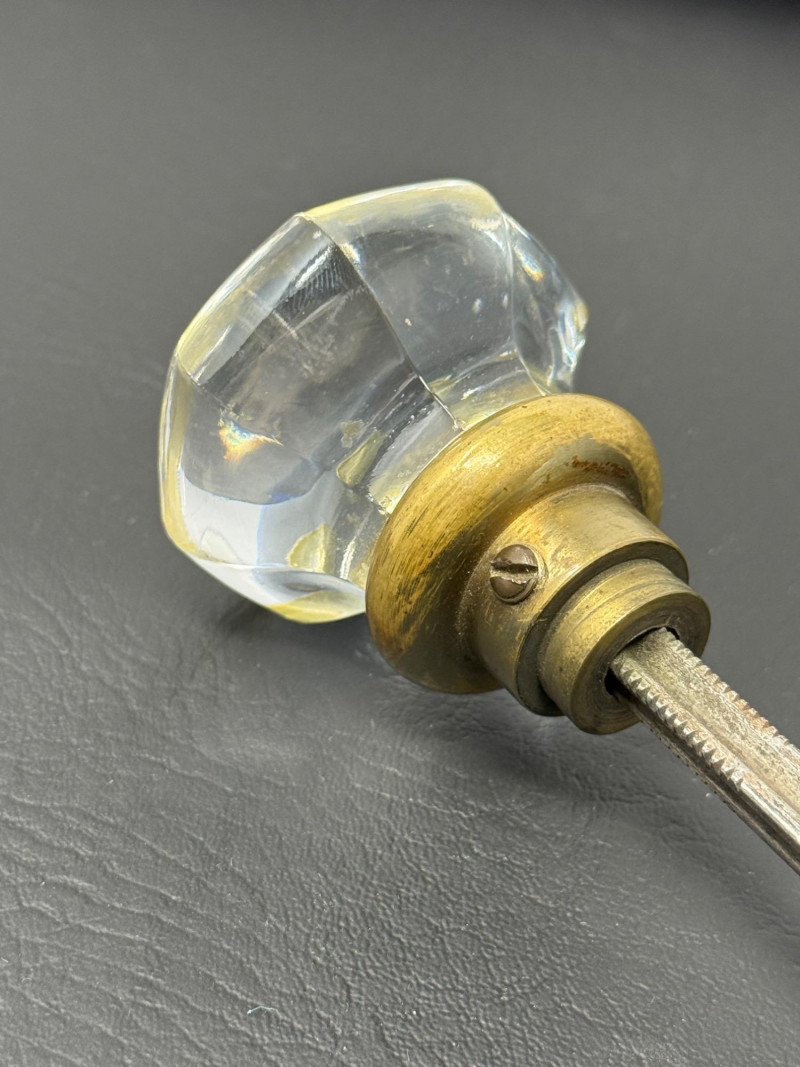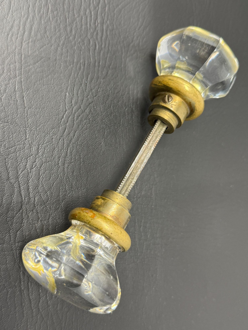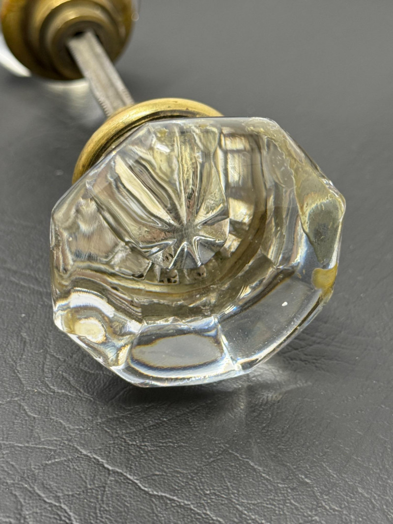 Antique Double Handle Glass Door Knob. 3” Octagon glass door knob set for thick doors. 7” long. 2.25 inches between knobs.
