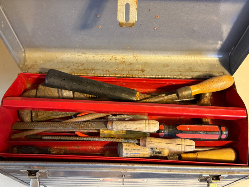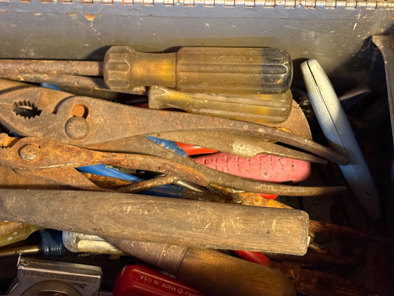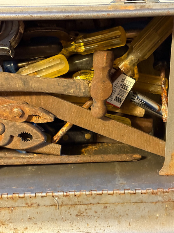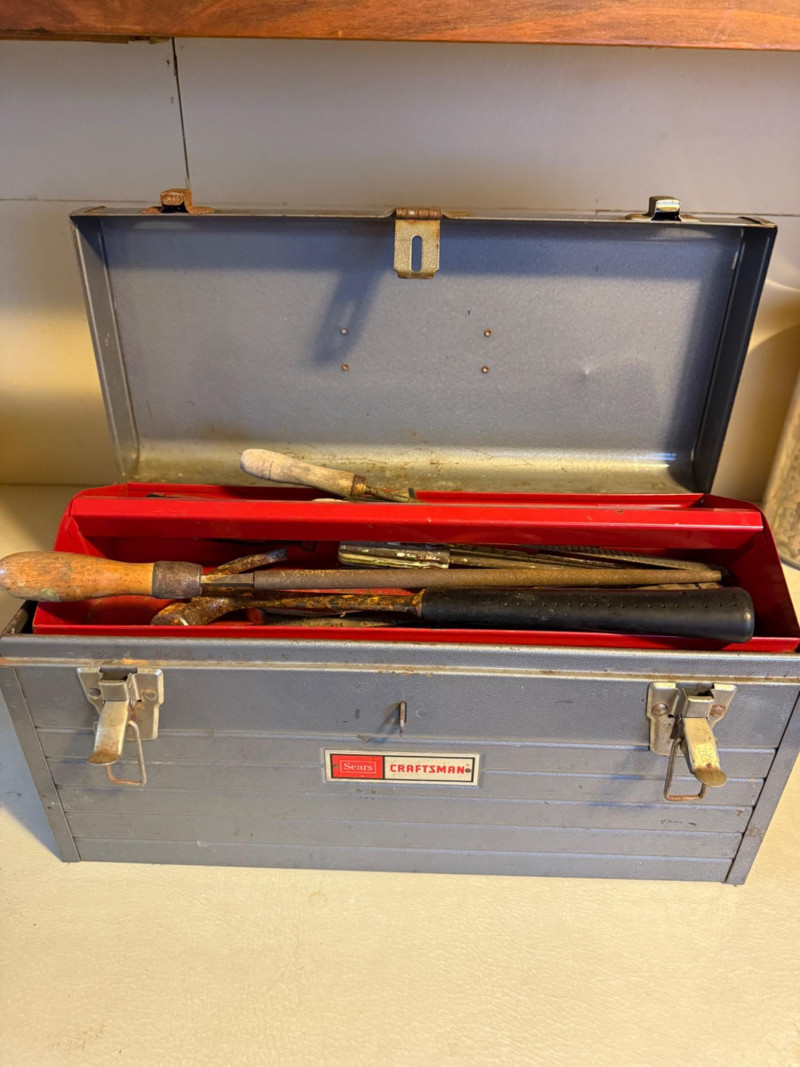 Metal Craftsman Tool Box Full of Tools Lockable Probably holds every tool needed for every day use, and then some. Some rusty, some not.