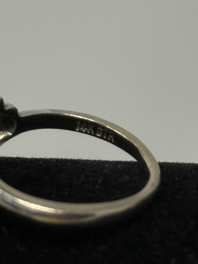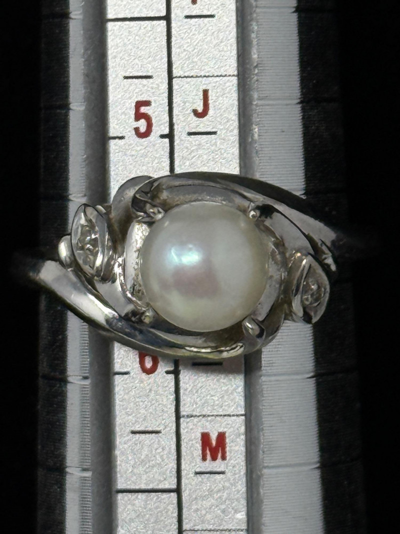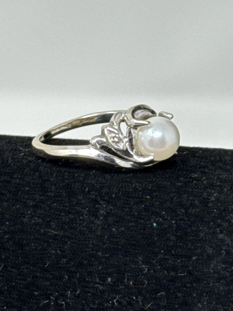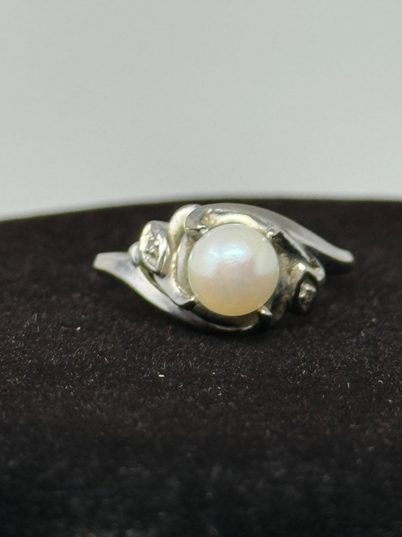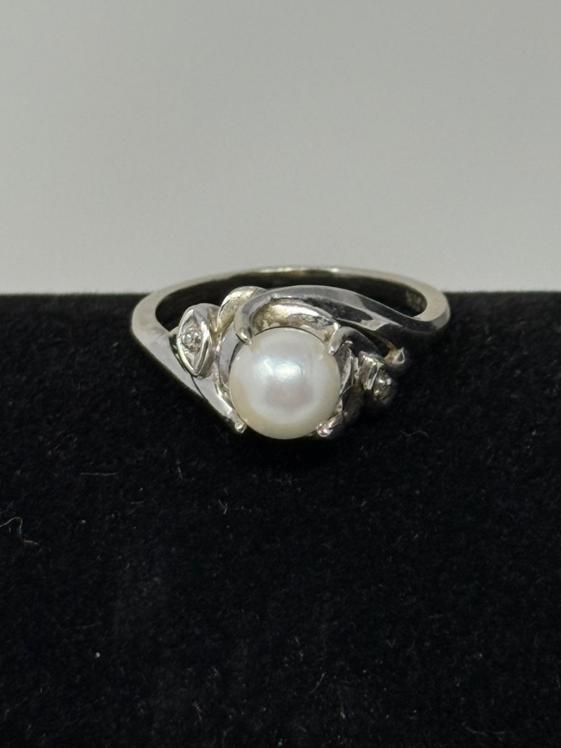 14K White Gold, Pearl and Diamond Ring Size 5.5 Ring is stamped 14K GTR Pearl is in a floating mount which allows it to move.