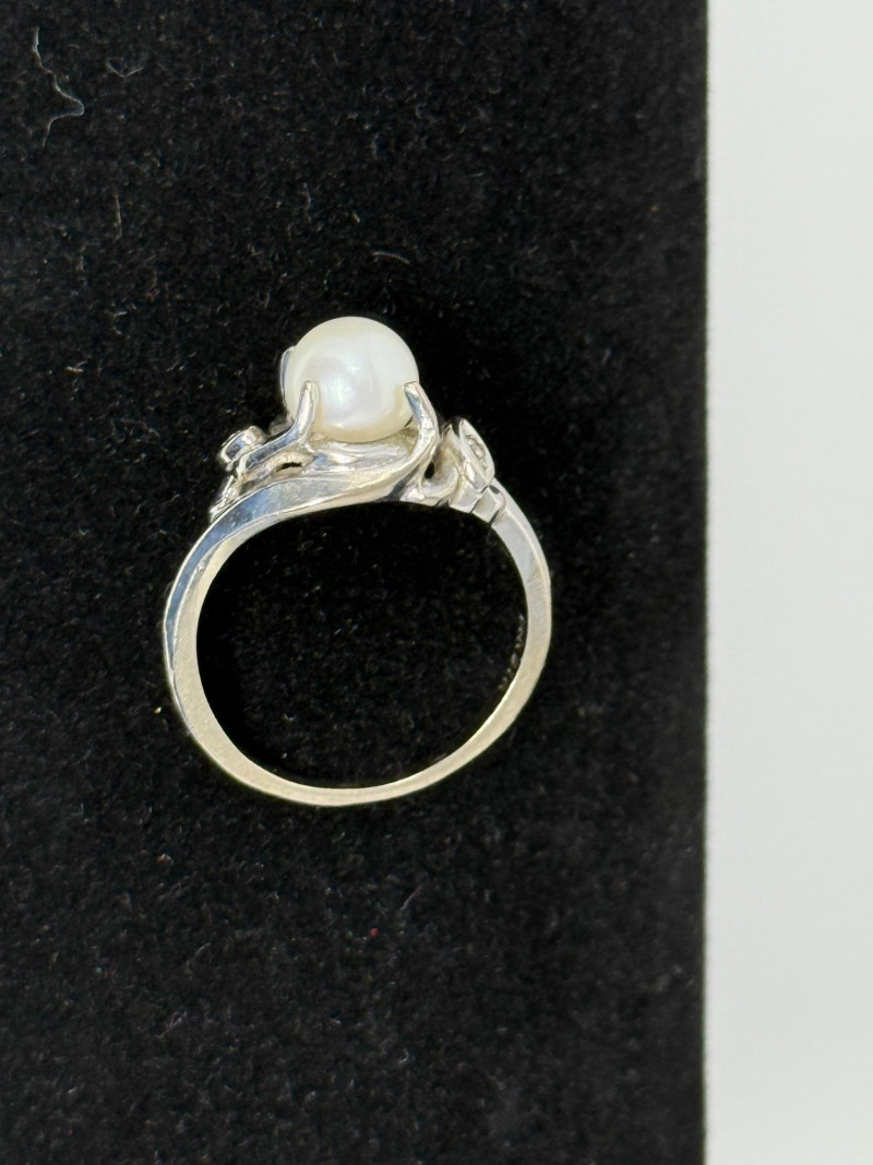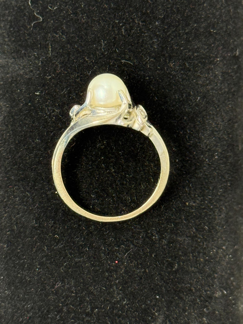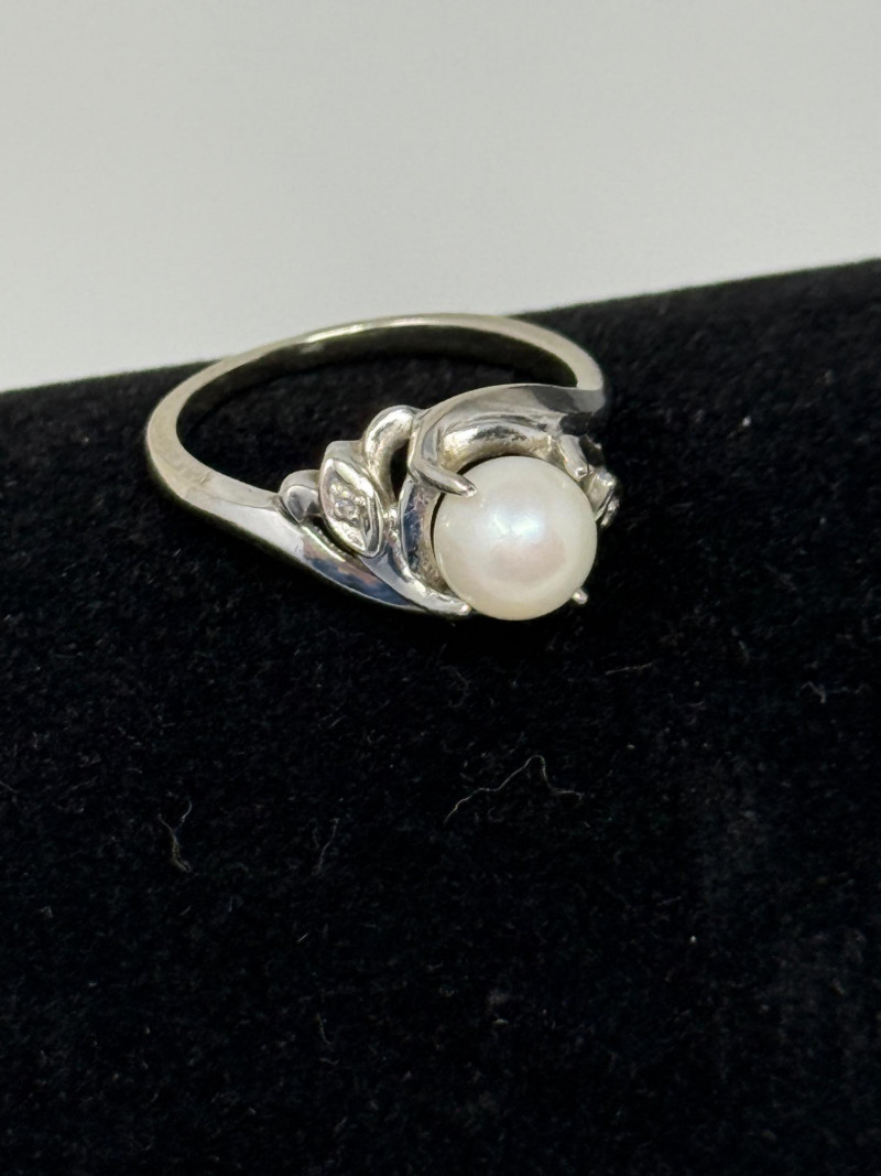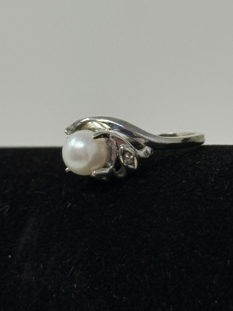 Lot # 226 - 14K White Gold, Pearl and Diamond Ring Size 5.5