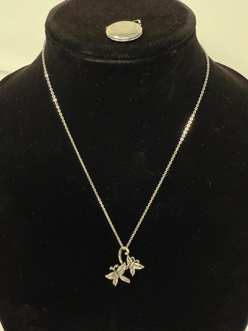 Lot # 229 - Pewter Butterfly Pendant & Silver Tone Locket Pendant