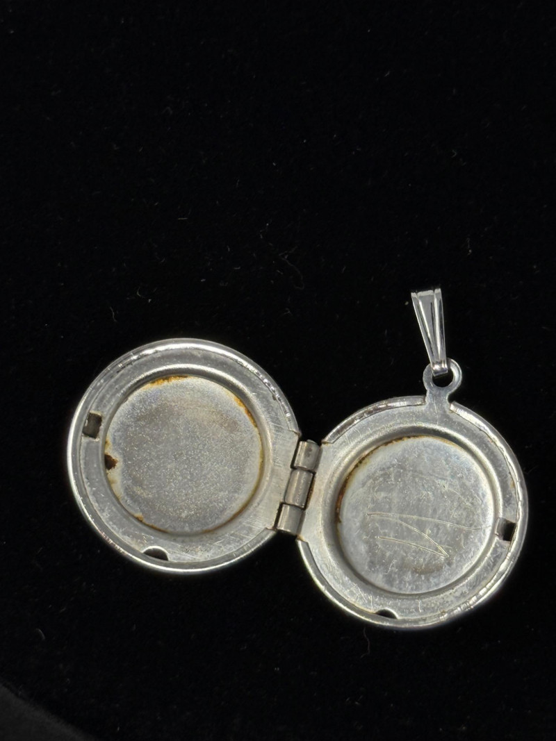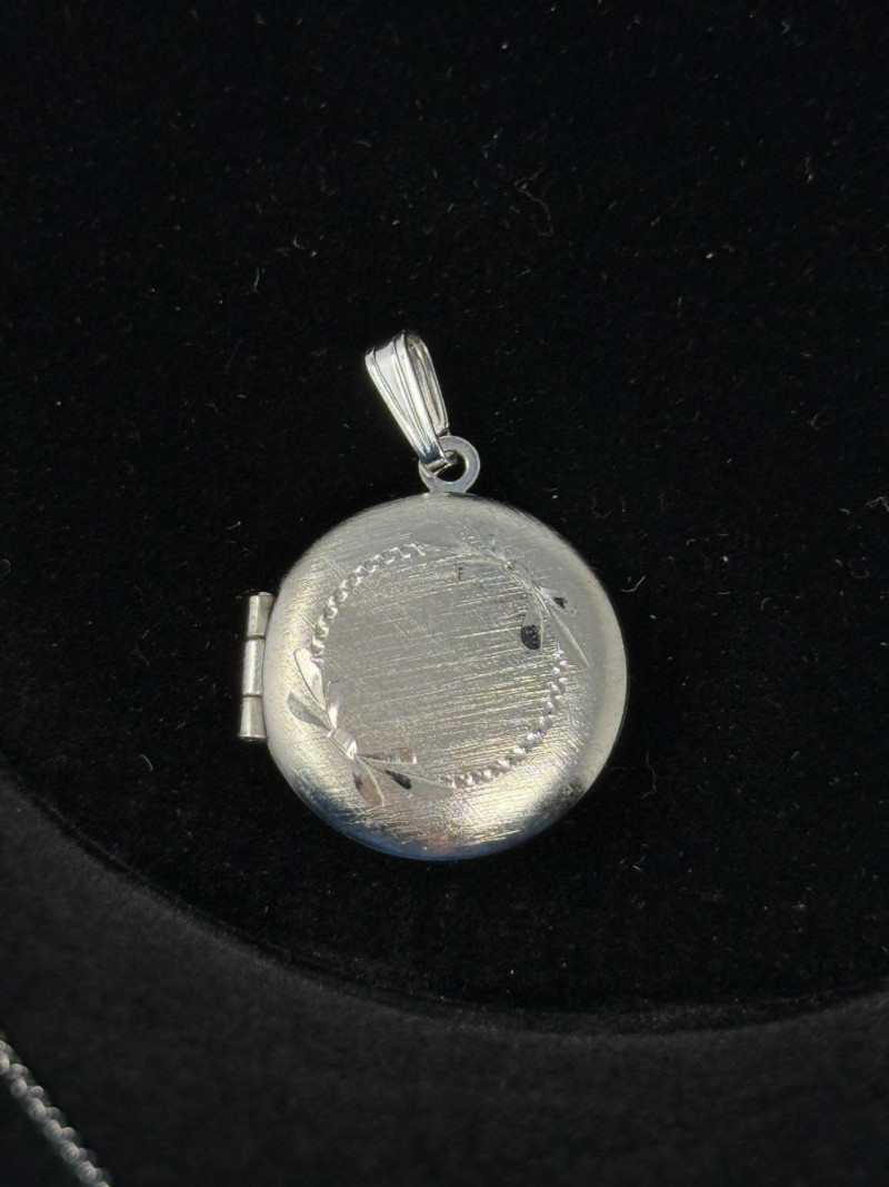 Pewter Butterfly Pendant & Silver Tone Locket Pendant Pewter Butterfly Pendant on 19” chain. Silver Tone etched ring on brushed front Locket Pendant. .75” round.
