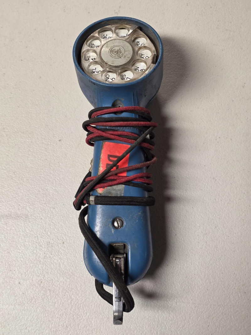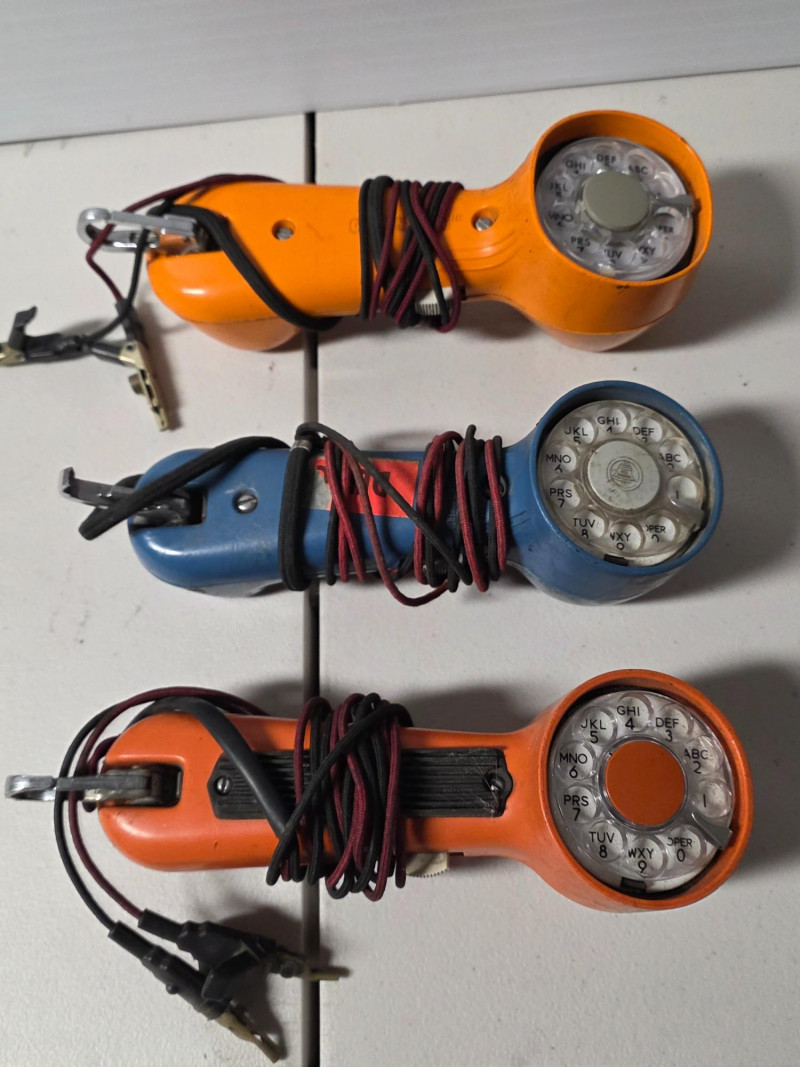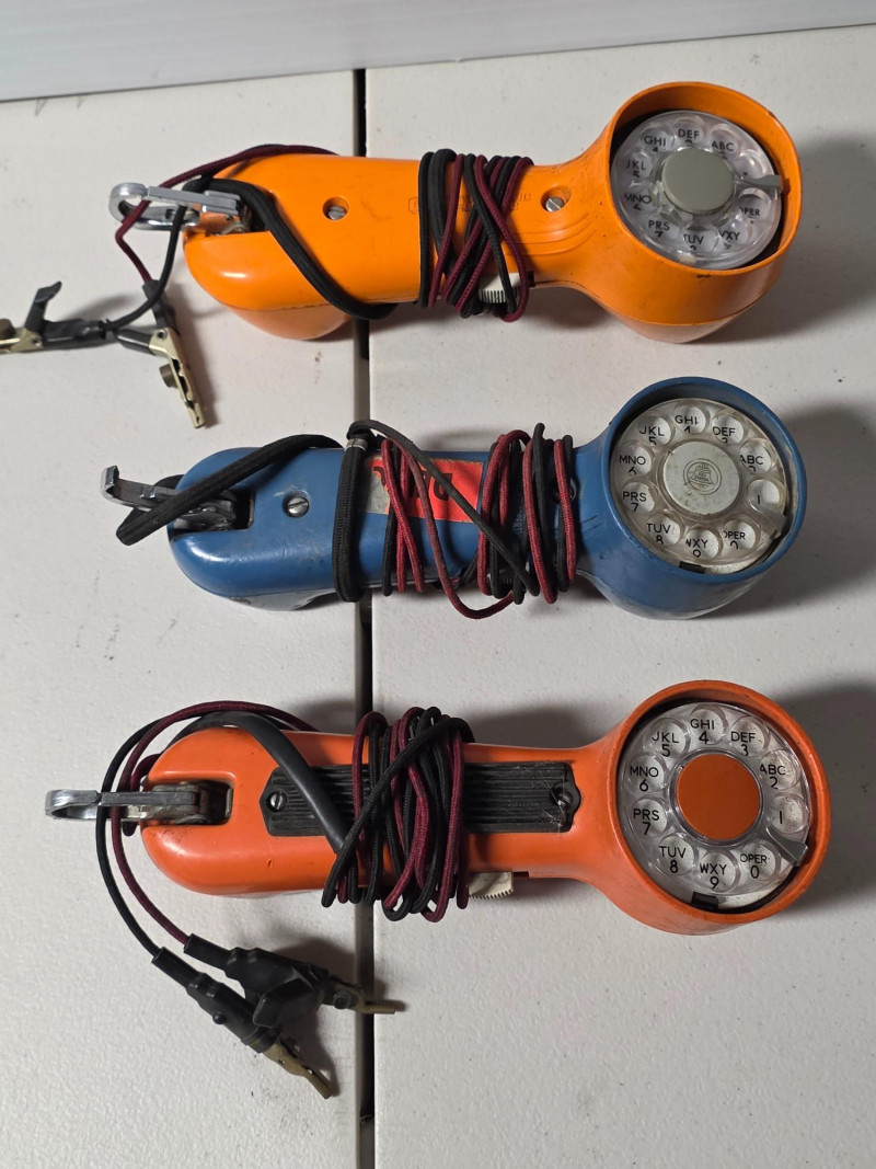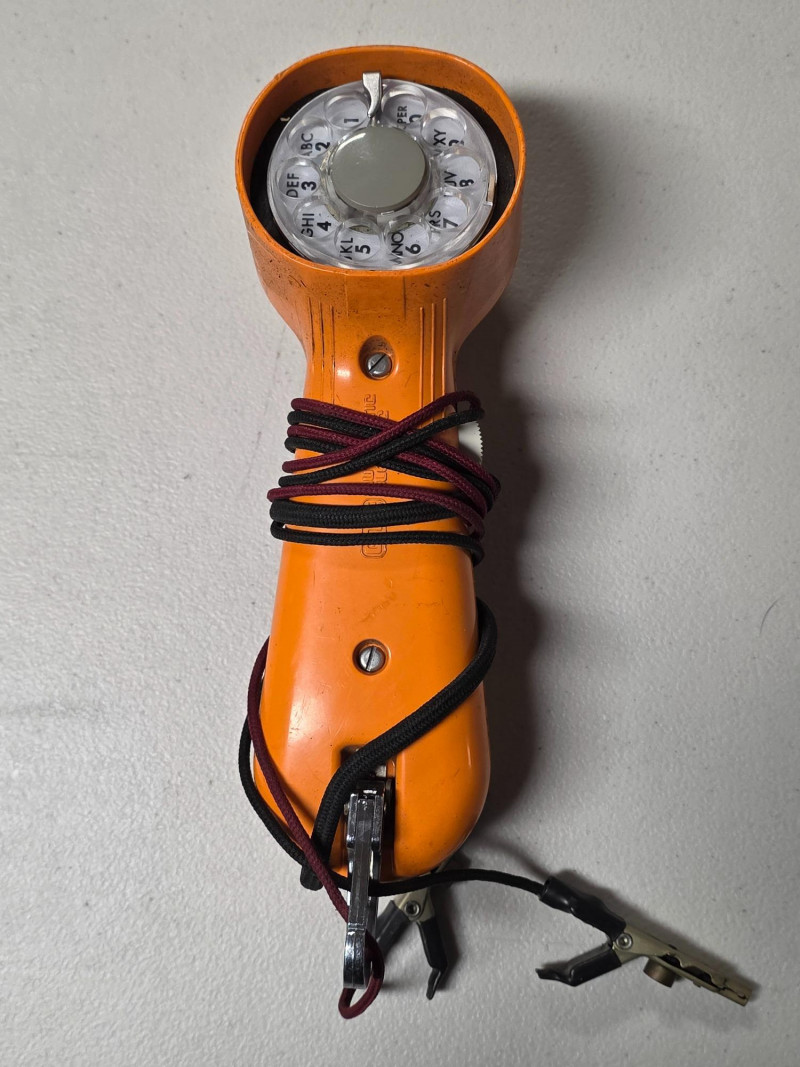(3) Vintage Western Electric Bell System Rotary Test Telephone Handset These specific models were a tool used by telephone technicians, often called a "butt set" or "buttinski". It was manufactured during the 1940-1969 period. The handsets have a rotary dial for making calls and testing lines. It features a metal clip hook for hands-free use while working on telephone poles or in utility boxes Untested! 10"T x 3"W Cool pieces of memorabilia!