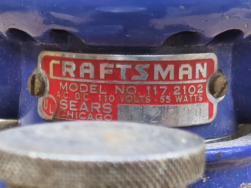 Vintage Craftsman Handheld Rotary Tool With Drill Press Attachment Craftsman Model #117.2102 Manufactured in the late 1930s or 1940s for Sears by the Excel Auto Radiator Co. and is often referred to as a "Crafty Dremel" due to its resemblance to Dremel's rotary tools Type: Corded electric rotary tool (die grinder/hand grinder). Voltage: 110 V Includes 50-Piece Carbide Bit Set Tested - Works!