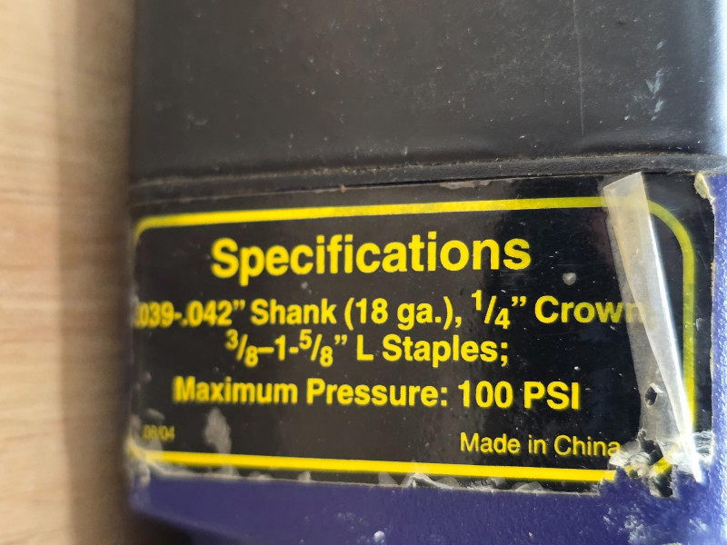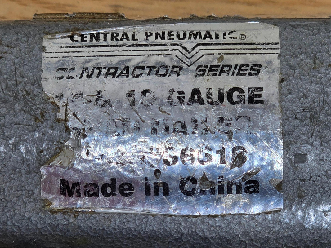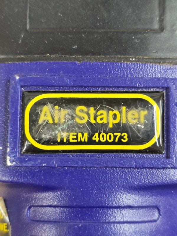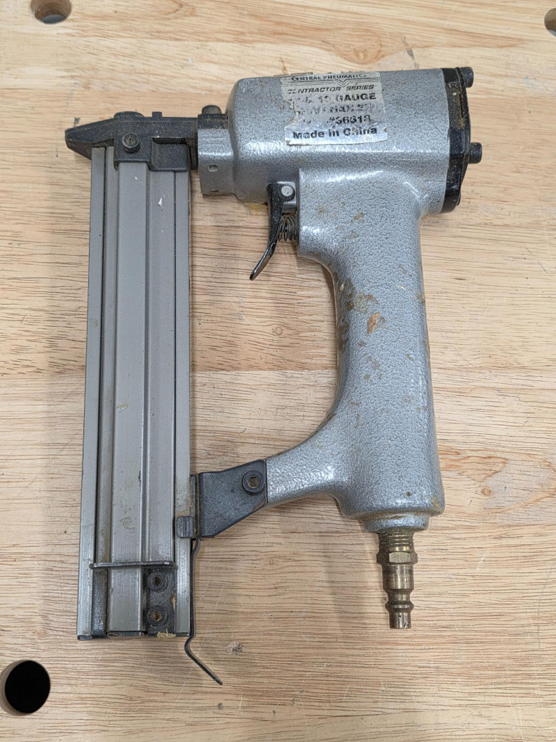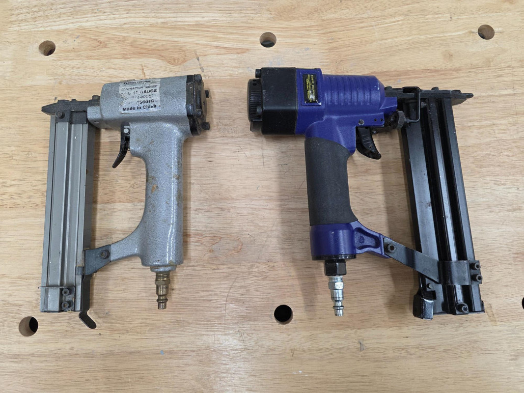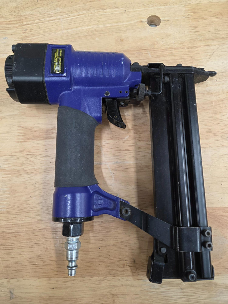 Central Pneumatic Contractor Series 18/19g Air Nailer & 18gauge 1/4" Air Stapler (1) Central Pneumatic Contractor Series 18/19 gauge Air Nailer - #36618 Fastener Compatibility: It is unique for supporting both 18-gauge and 19-gauge brad nails. Application: Designed for lightweight wood projects, such as baseboard, MDF, and hardwood trim. Air Requirements: Typically operates between 70 to 120 PSI. Build: Features a die-cast aluminum housing for a lightweight feel (approx. 2.2–2.6 lbs) (1) Central Pneumatic Contractor Series Air Stapler - #40073 Type: 18 Gauge Stapler (also acts as a Brad Nailer for some models). Crown Size: 1/4 inch. Staple Length: Works with 5/8" to 1-1/2" staples. Trigger: Full sequential tip safety trigger (no rapid-fire/bump fire). Design: Lightweight, with a 360° adjustable exhaust and quick-release nose for clearing jams. Operation: Requires an air compressor, typically run at 90 PSI Both Tested - Both Work!