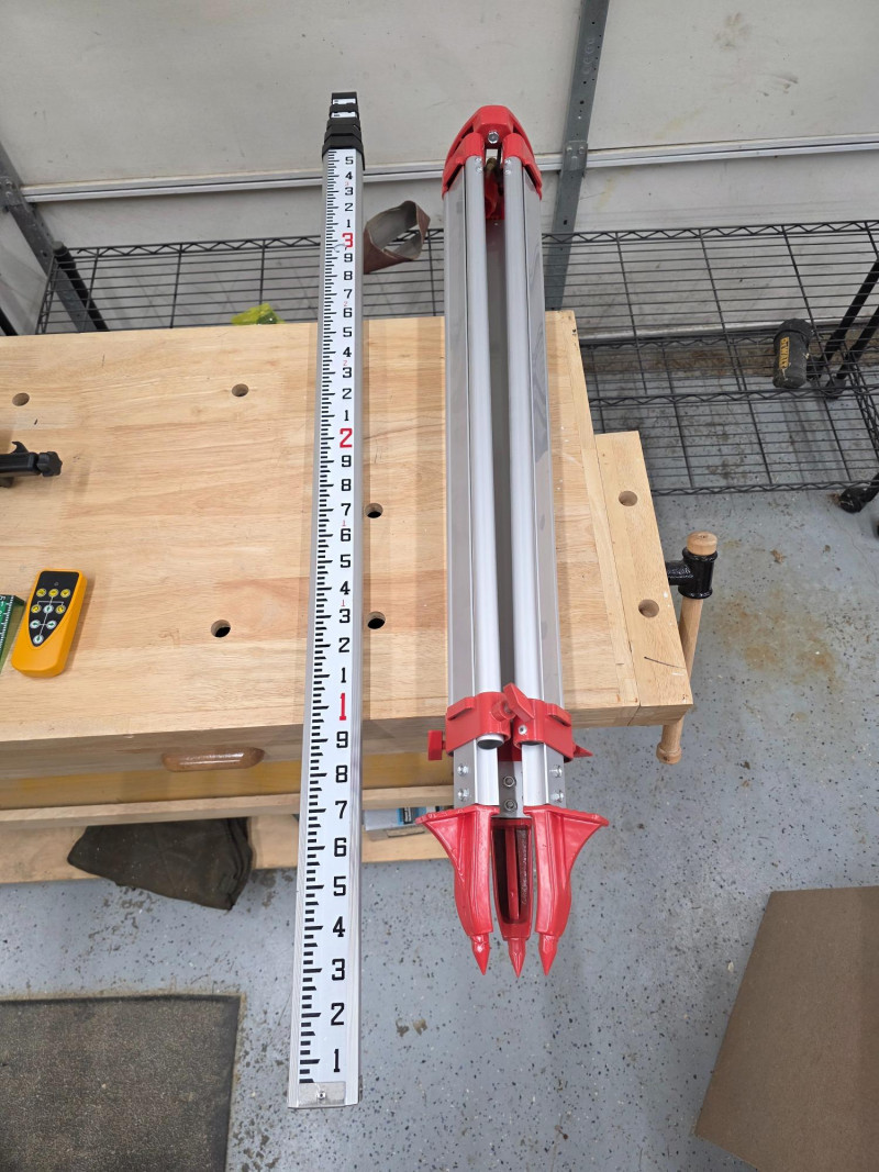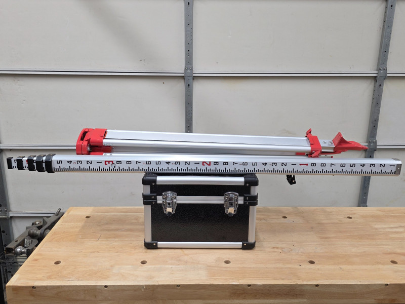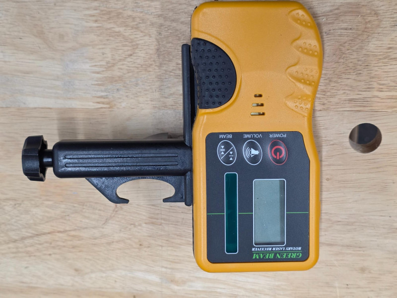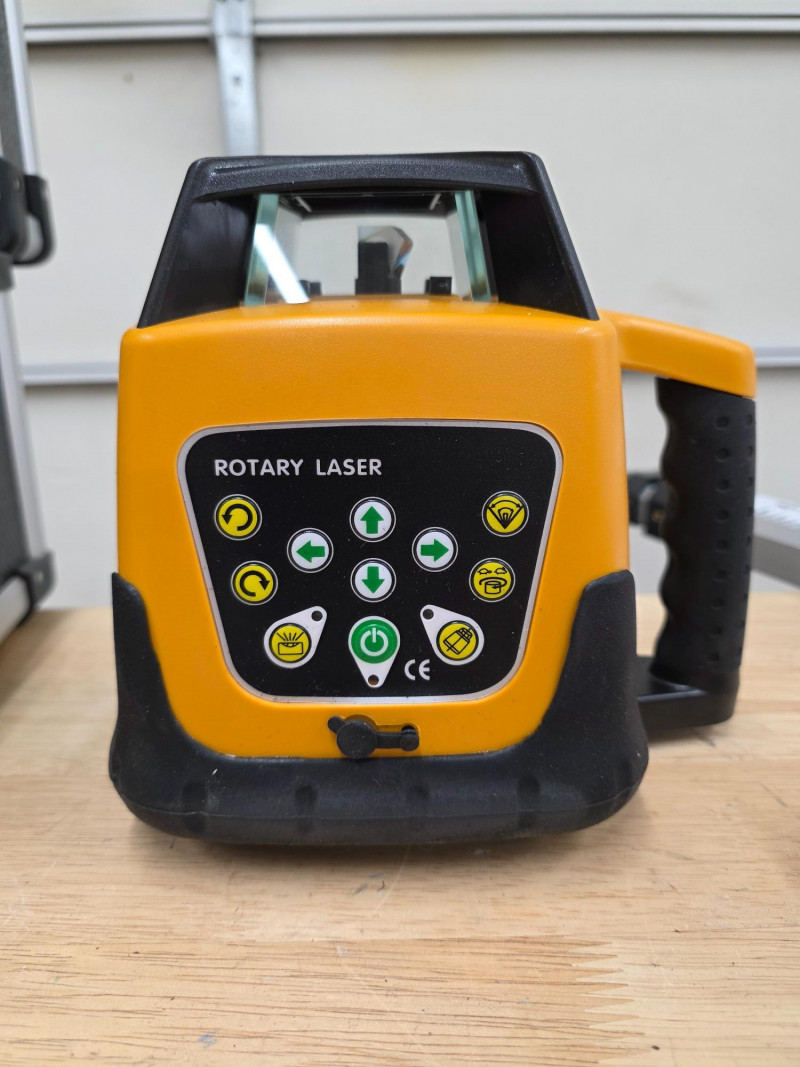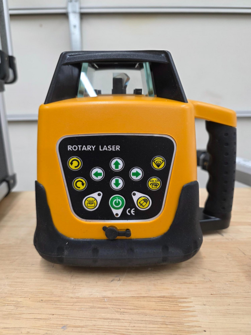 300M Self-Leveling Green 360° Rotary Laser Level, Tripod & 5M Caliper Construction tool used for establishing accurate horizontal or vertical planes for tasks such as grading, site setup, or formwork leveling Function: It automatically self-levels within a certain range (typically around ±5°) using internal electronics and positioning motors to project a consistent 360-degree laser line Visibility and Range: Green beam lasers are generally suitable for indoor/outdoor use, and with a compatible laser detector (like the one shown in your image), the working range can be extended for outdoor applications. Includes laser unit, receiver, remote control, laser target plate, safety glasses, tripod, caliper and a hard-shell carrying case. Appears barely used! Missing power cord Untested!