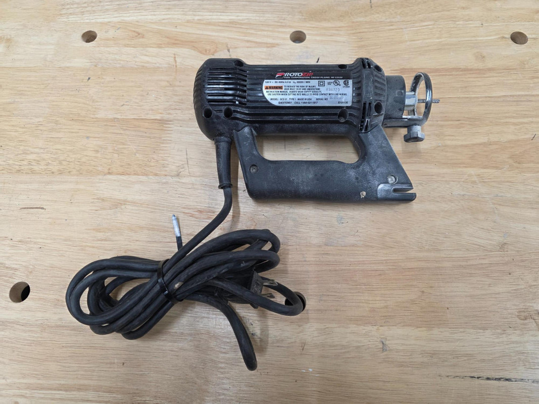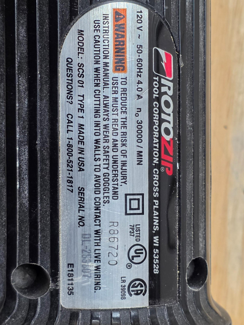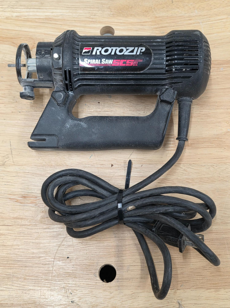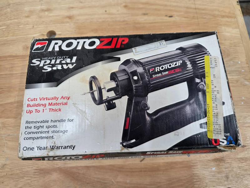 RotoZip Corded Spiral Saw SCS01 Heavy-duty, corded electric spiral saw and rotary tool primarily used for cutting out shapes in drywall, wood, and other materials Includes original box Tested - Works!