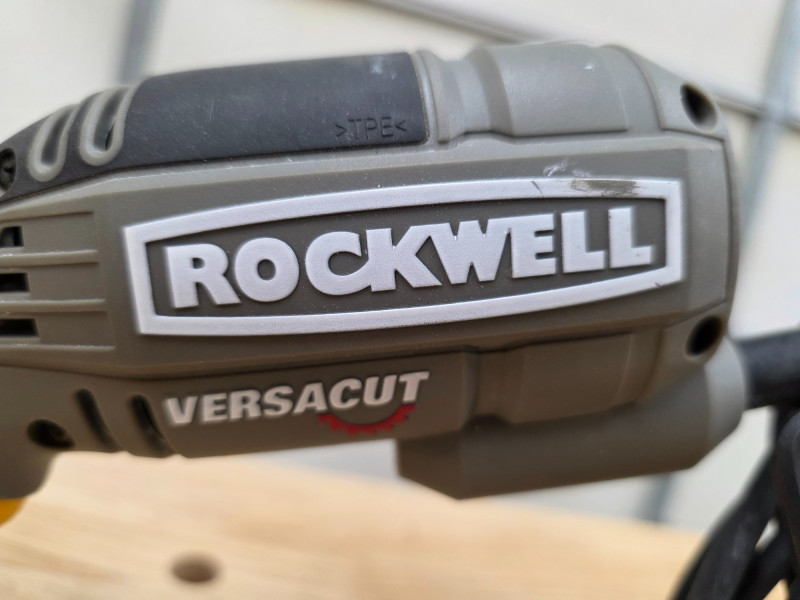 Rockwell VersaCut Mini Circular Saw With Laser Cut Guide Rockwell Model #RK3440K The Rockwell RK3440K VersaCut is a powerful, ultra-compact 4-amp corded mini circular saw designed for cutting various materials with one hand. It is a versatile tool for both DIY enthusiasts and professionals, suitable for making precision rip and plunge cuts. Key Features and Specifications Motor: 4 Amp motor delivers a no-load speed of 3,500 RPM, providing power comparable to larger saws for many tasks. Design: Features a lightweight (around 4 lbs) and ergonomic, slim-grip design for comfortable one-handed operation and maneuverability in tight spaces. Cutting Capacity: Uses a 3-3/8 inch blade and can cut materials up to 1-1/16 inches thick. Versatility: Capable of cutting a wide variety of materials, including wood, flooring, plastic, ceramic tile, slate, aluminum, and sheet metal Precision: Equipped with a precision laser guide for accurate cuts and a depth adjustment lever for easily setting the desired cutting depth. Safety: Includes a pivoting metal guard for safe plunge cuts and a lock-off switch to prevent accidental starting. Dust Management: A dust extraction adapter is included to keep the cut line clear for visibility and a cleaner work area. Includes bag, manual & accessories Tested - Works!