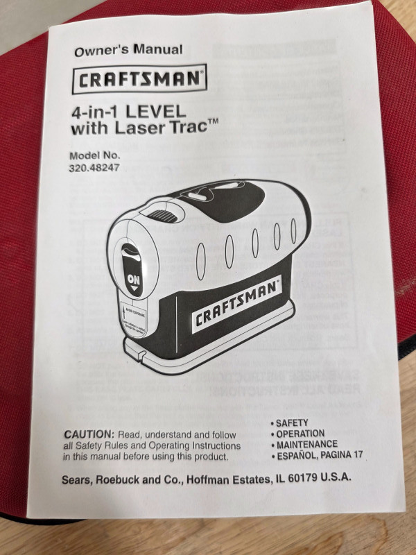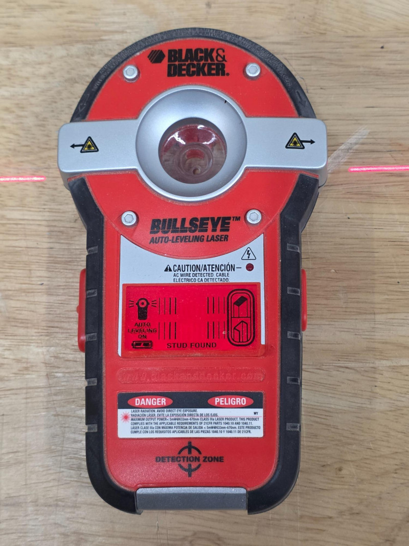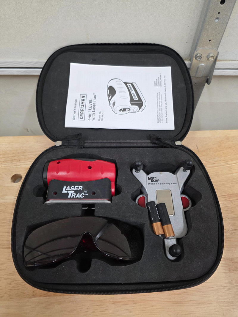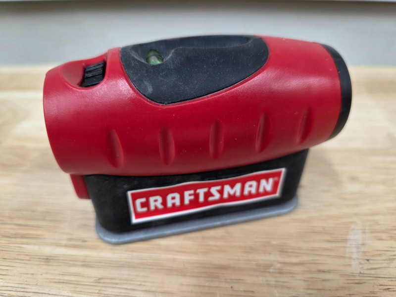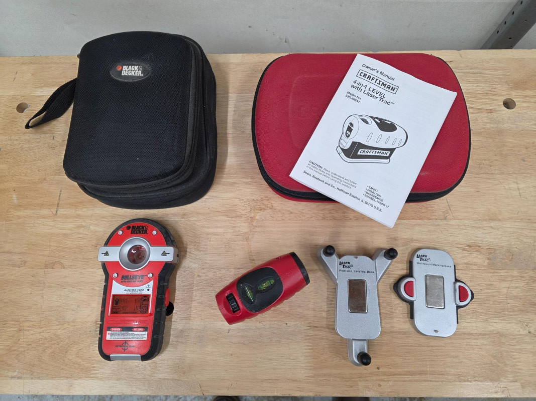 (2) Black & Decker & Craftsman Laser Levels (1) Black & Decker Bullseye Auto-Leveling Laser With Stud Finder B&D Part #BDL190S All-in-one interior tool that combines an auto-leveling line laser with a stud sensor (1) Craftsman 4-in-1 LEVEL with Laser Trac Line Craftsman Part #320.48246 A versatile, portable tool for DIY and professional measuring, featuring a red laser, self-leveling, bubble vials, and often coming with a zippered case, laser glasses, and various bases for mounting on tripods or walls, designed to project precise horizontal and vertical lines for layout tasks Both include accessories & zippered cases Untested - May need new batteries!