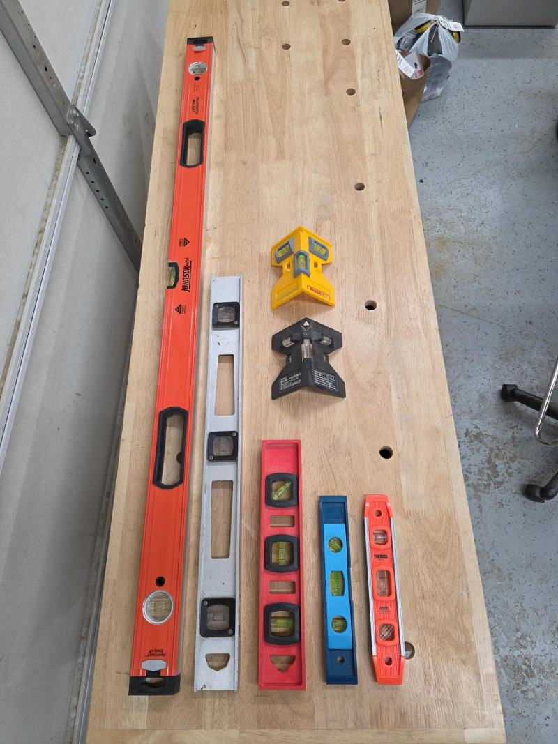 Johnson 48" Heavy Duty Aluminum Box Level & More! (1) Johnson 9850-4800 48" Heavy-Duty Aluminum Box Level (1) 24" Aluminum Box Level (1) 12" Spirit Level (2) 9" Torpedo Levels (2) Magnetic Post Levels 7 pieces in total!