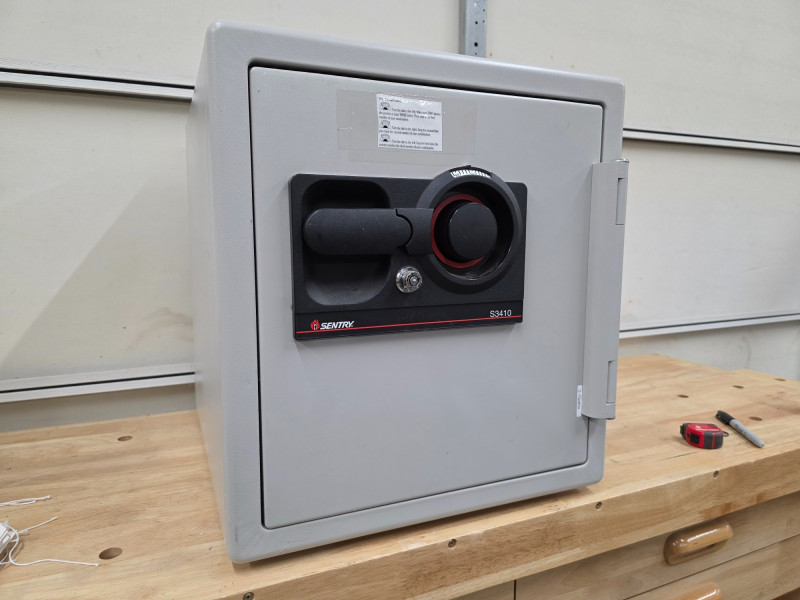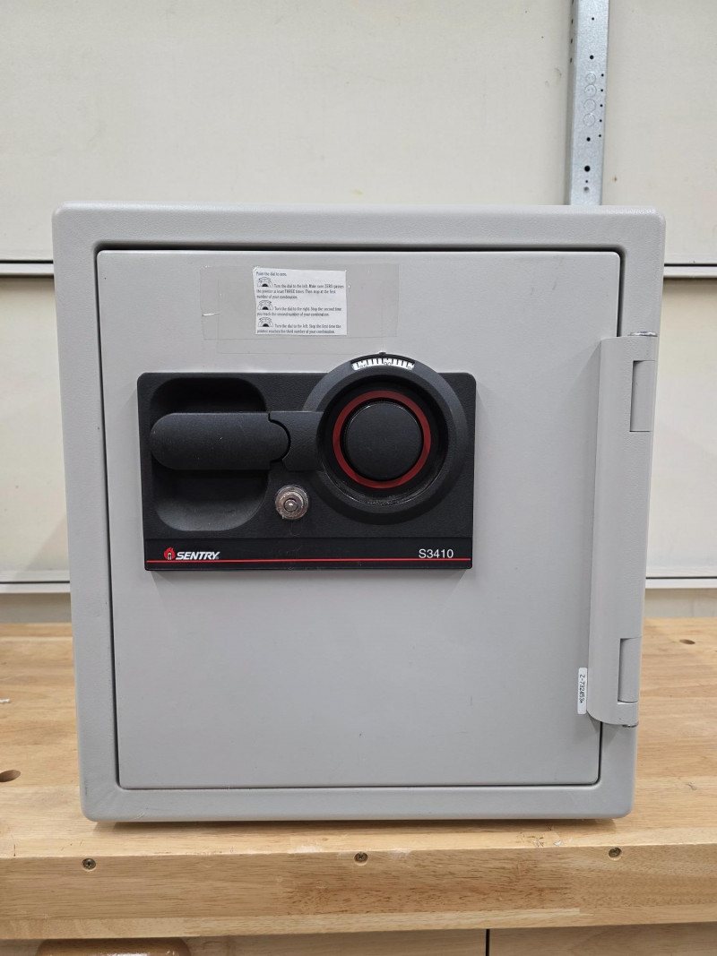 Sentry S3410 Dual Combination & Key Lock Safe Combination will be provided to the winning bidder, however the key is missing! UL Classified to protect documents and other valuables from fire damage for up to 1 hour at 1700°F. Features a combination dial with a key lock for security. Includes two multi-position shelves for organization. The safe features solid steel construction and live-locking bolts Tested - Works! 18"T x 16"W x 17"D