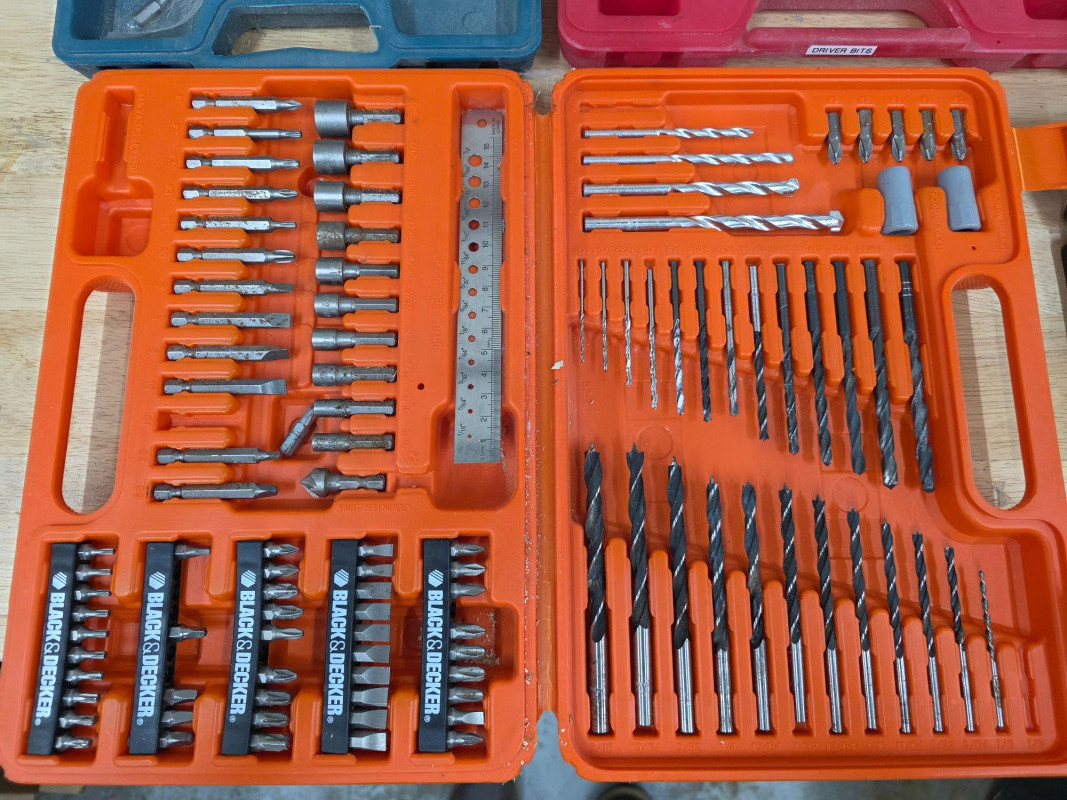 (8) Screw Bit & Drill Bit Sets Galore! Literally hundreds of screw bits and about 30 drill bits in the Black & Decker set (nearly complete) Some sets are complete & some incomplete If you're ever missing a bit, I'm guessing it is in one of these sets! 8 sets in all!