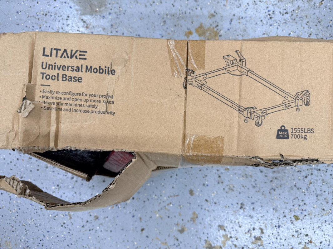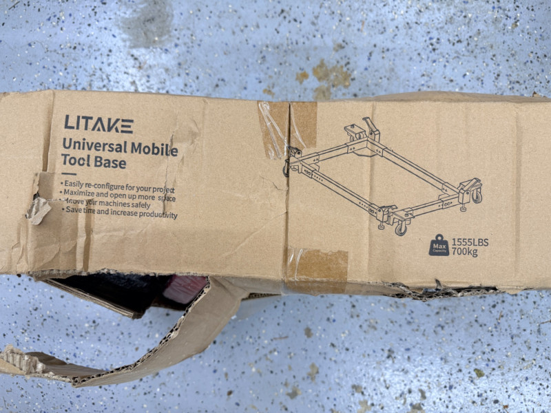 This is a Litake Universal Mobile Tool Base. Key features include: Max Capacity: 1555 LBS (700 kg) Easily re-configure for different projects Functionality: Maximize space, move machines safely, save time, and increase productivity Typically made of durable materials like carbon steel to support heavy woodworking equipment.