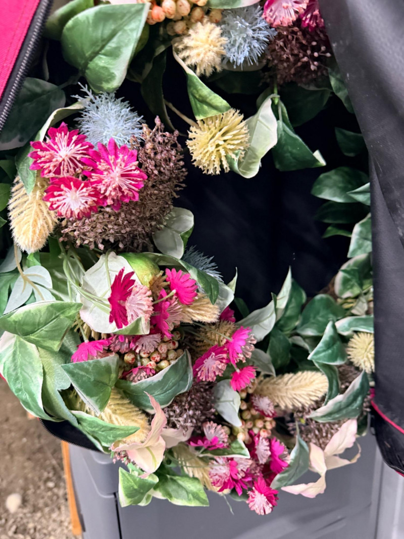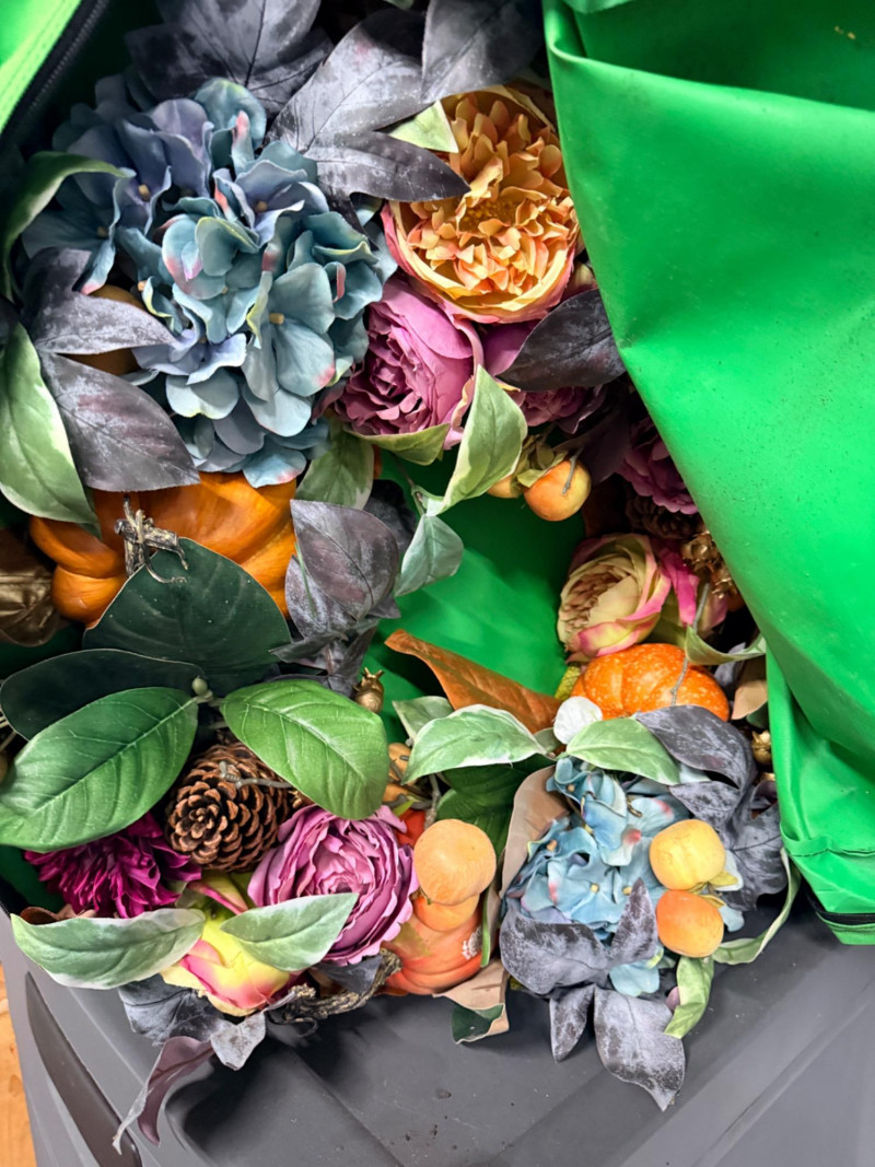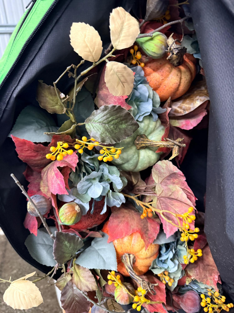 5) Seasonal Wreaths in Storage Bags Spring, summer and fall wreaths in Frontgate canvas storage bags.