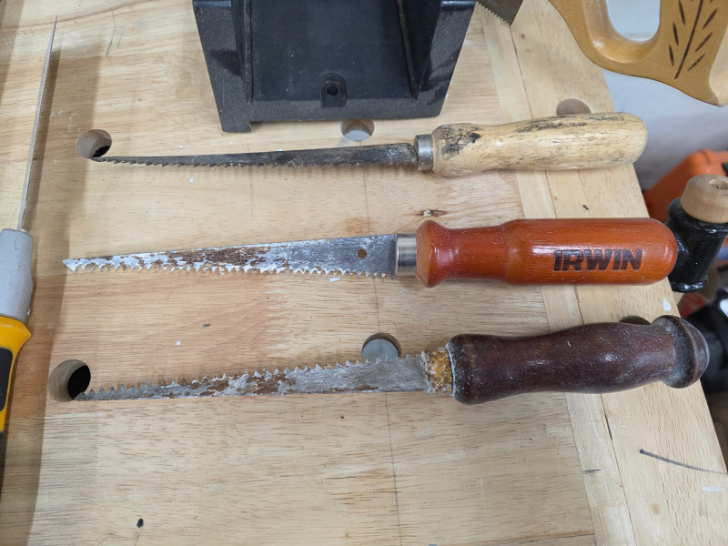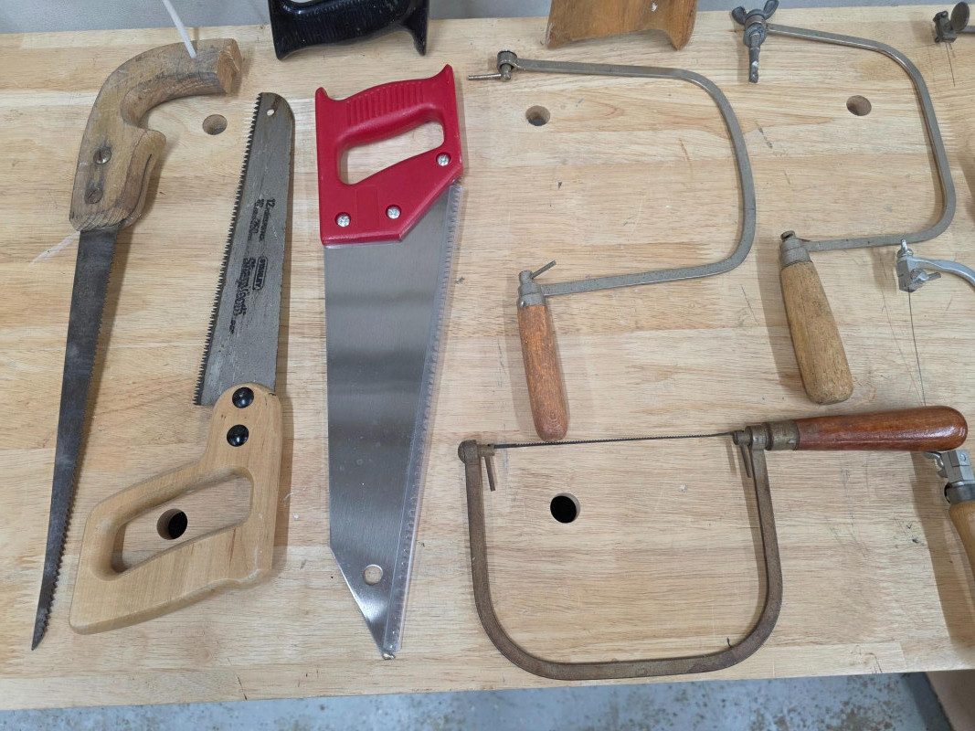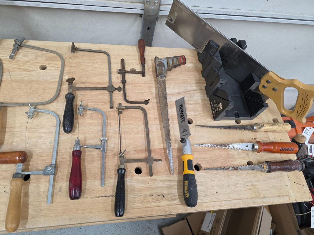 (19) Hand Saws For Days! Rip saws, keyhole saw, utility saws, coping saws, flush cut pull saw, miter saw with box and drywall saws 19 saws in all!