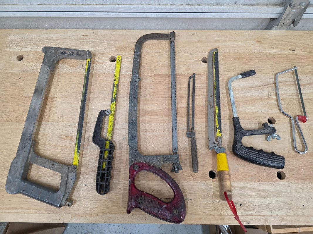 (7) Metal Hand Saws 6", 10", 12" metal saws Most include used blades