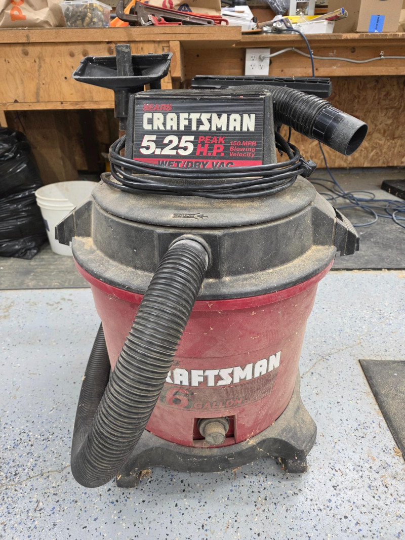 Craftsman 16-Gallon Wet/Dry Vac With Attachments Craftsman Part #113.177030 a 16-gallon wet/dry vacuum with a 5.25 peak horsepower motor and a detachable blower. It is a corded electric shop vacuum designed for general-purpose cleanup in a garage, workshop, or jobsite Tested - Works!