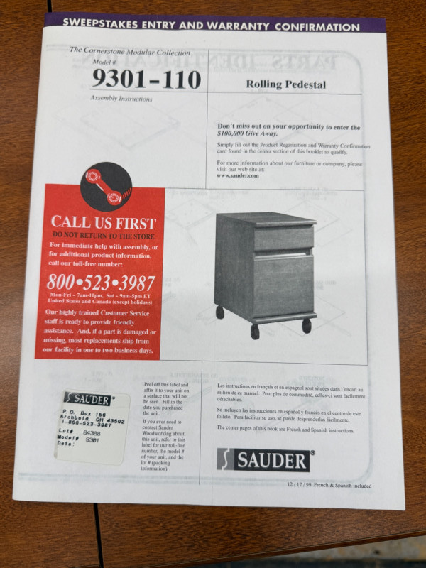 Lot # 103 - (2) Sauder Rolling Pedestal Drawer Units