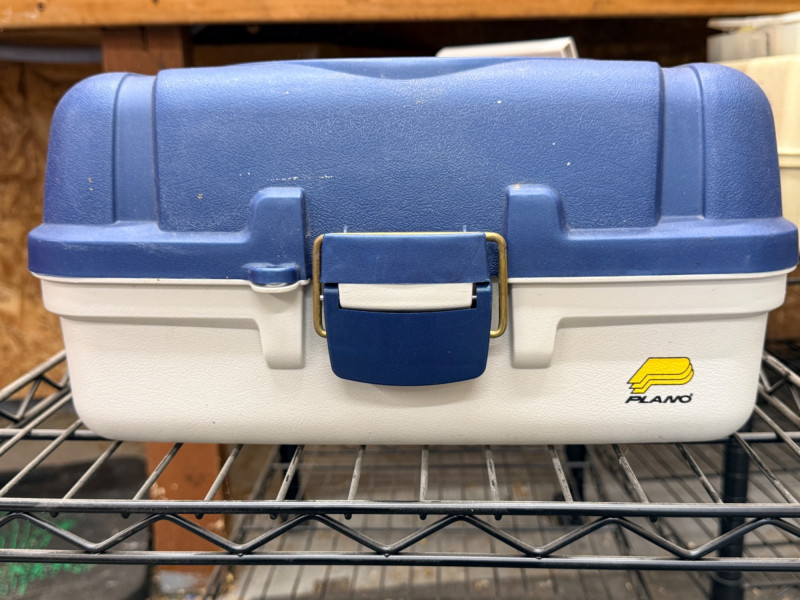 Plano Tackle Box of Candlefish and Point Wilson Darts Box measures 14”x7.5”x7” lockable with latch.