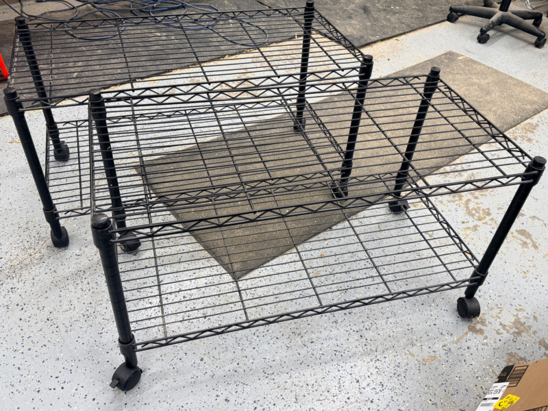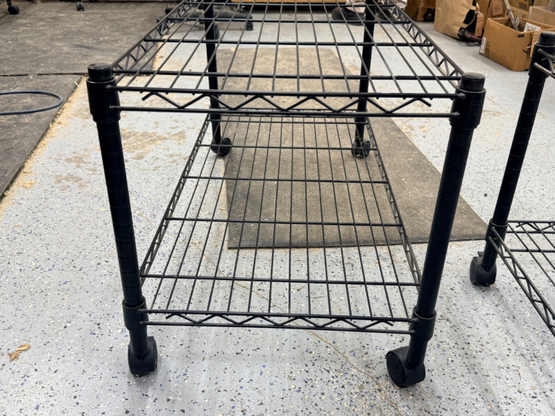 (2) Black Wire Rolling Carts 36”x18”x20” with locking swivel casters