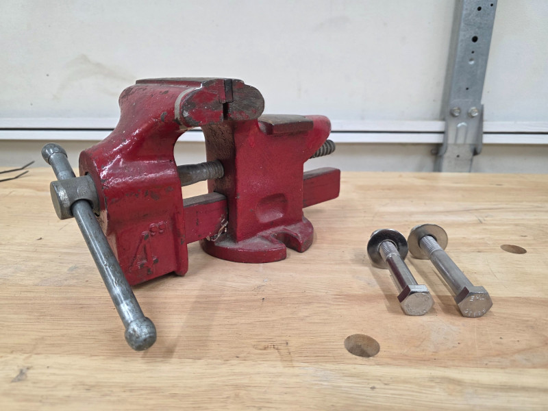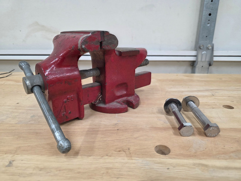 Vintage Red 4" Bench Vise Made in Korea Includes 2 bolts, washers & nuts for install Tested - Works!