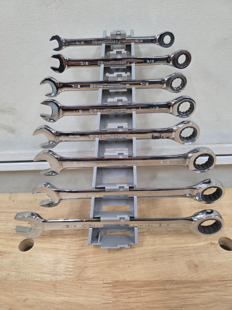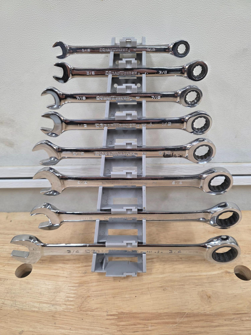 Set Of 8 Gearwrench SAE Ratcheting Combination Wrenches 5/16" 3/8" 7/16" 1/2" 9/16" 11/16" 3/4" 8 wrenches total, includes plastic wrench holder