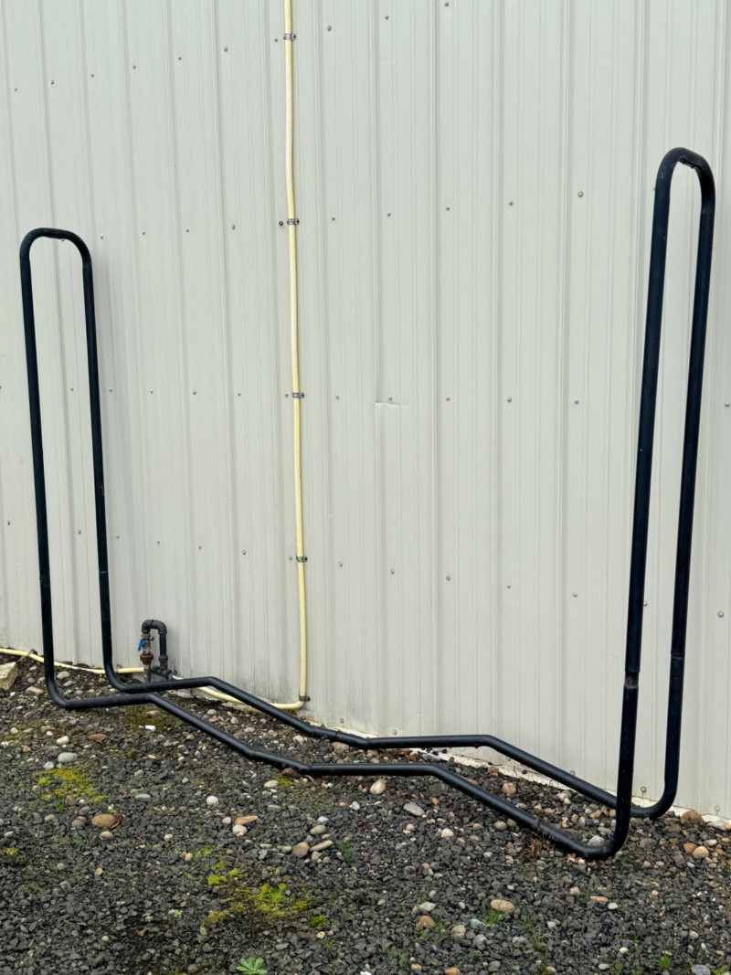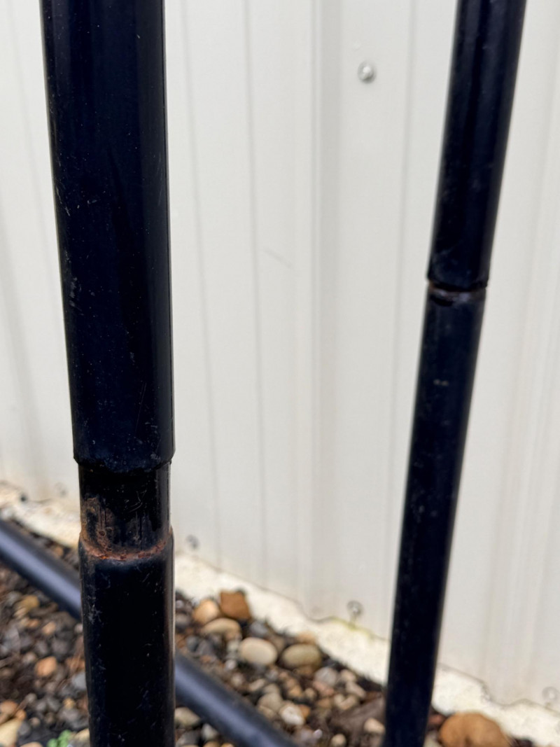 Tubular Black Metal Wood Storage Rack 8’long and 6’ tall 13” deep 4 pieces but some rust at the joints. May or may not break down.