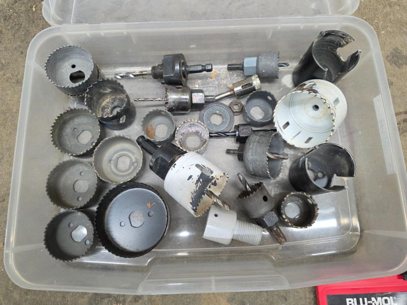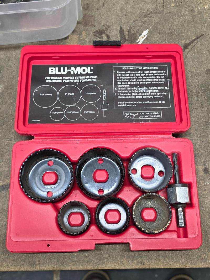 A Whole Lot of Hole Saws. The largest is a 3” and smallest is -1/4” Complete BluMol kit in carry case.