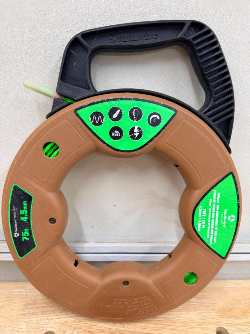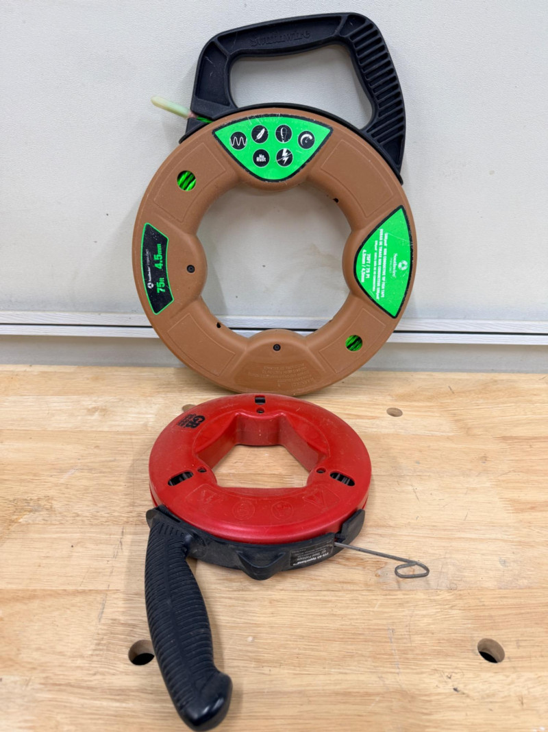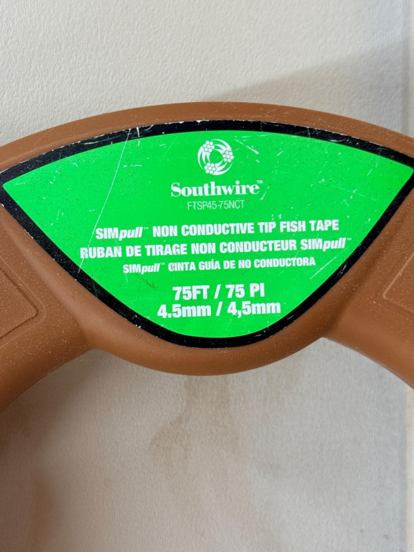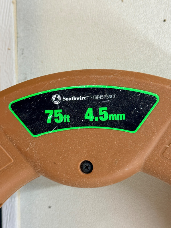 (2) Non-Conductive Fish Tape - SouthWire & Gardner Bender SouthWire 4.5mm, 75’ FTSP45-75NCT Non-conductive. Gardner Bender FTS-65 Upperhand in red case. 65’ steel fishtape.