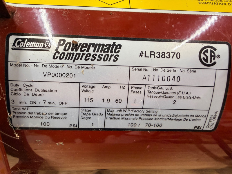 Lot # 136 - Coleman Powermate Air Compressor - Compact & Portable VP201