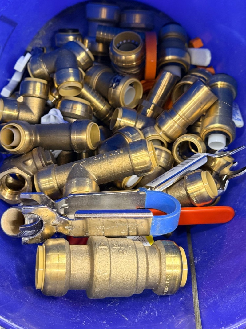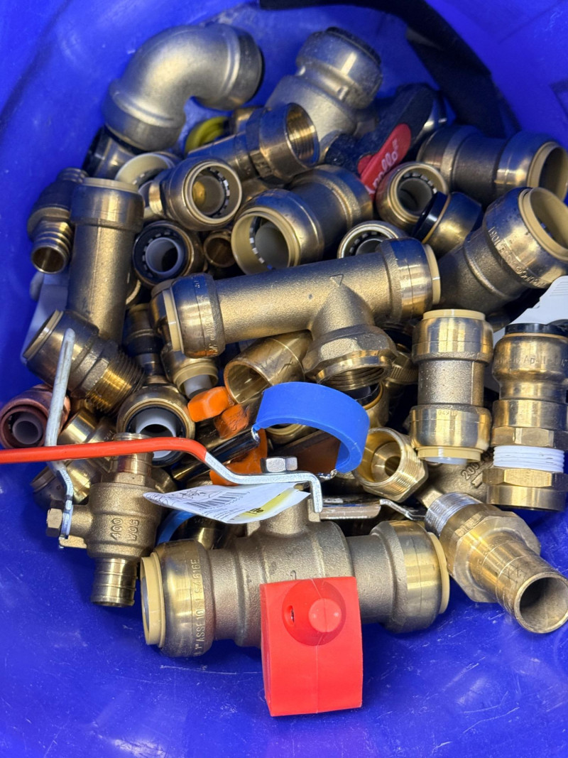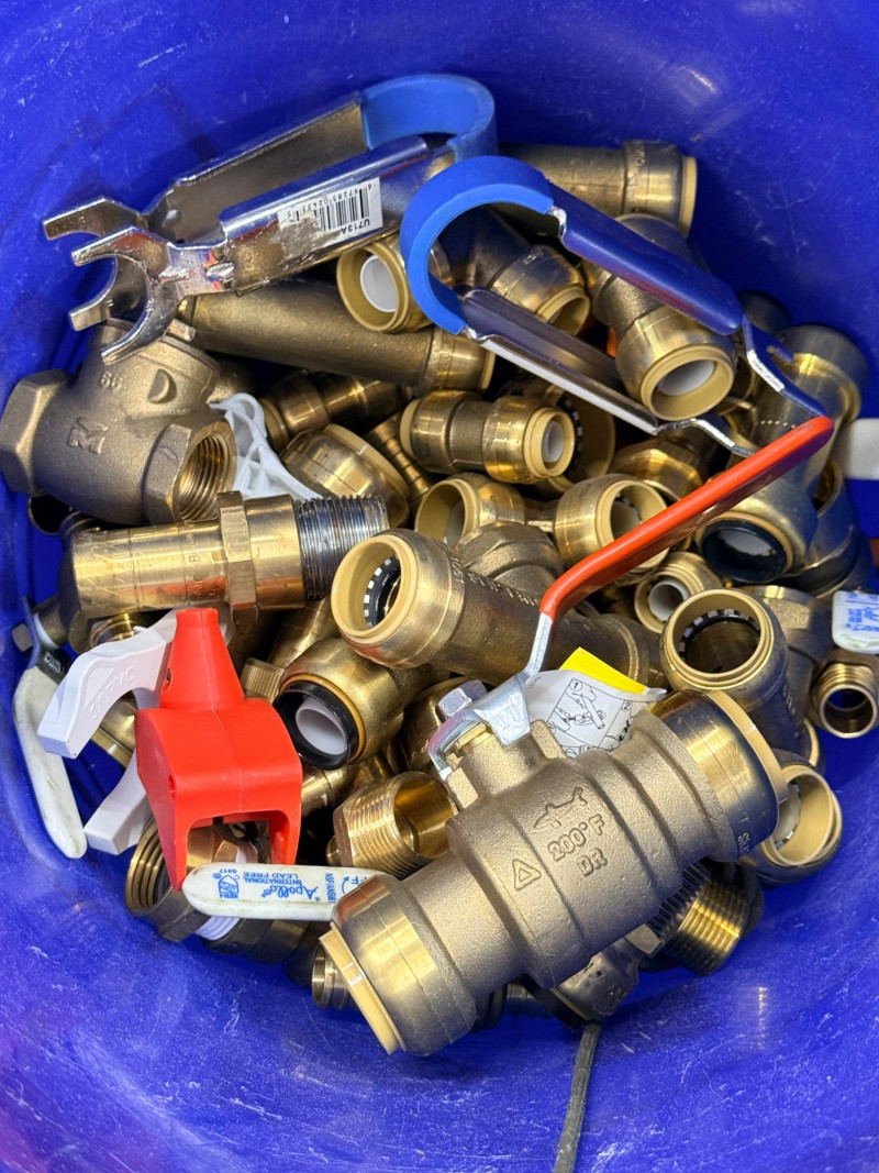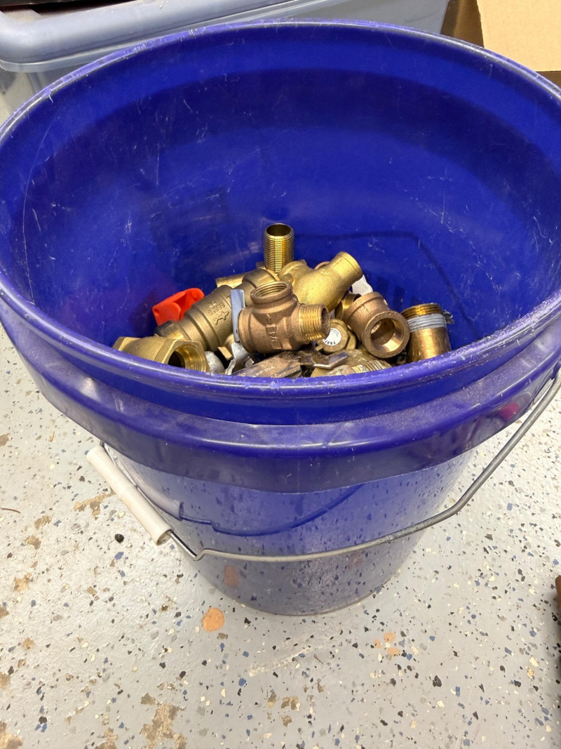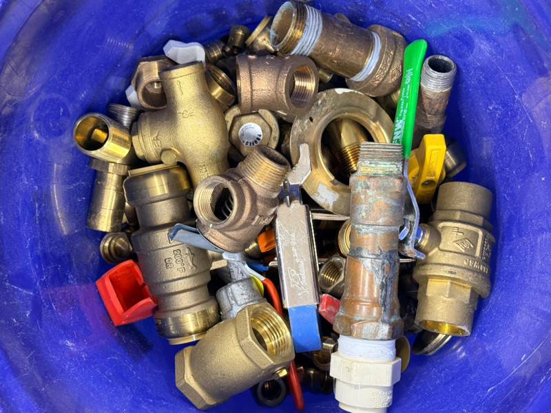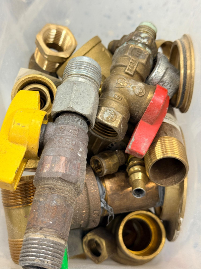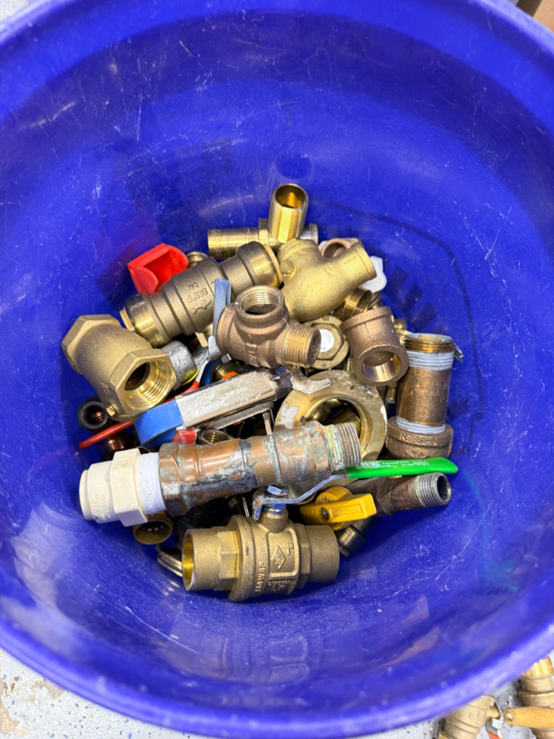 Brass Pipe Fittings and Valves - Half of a 5 Gallon Bucket Full