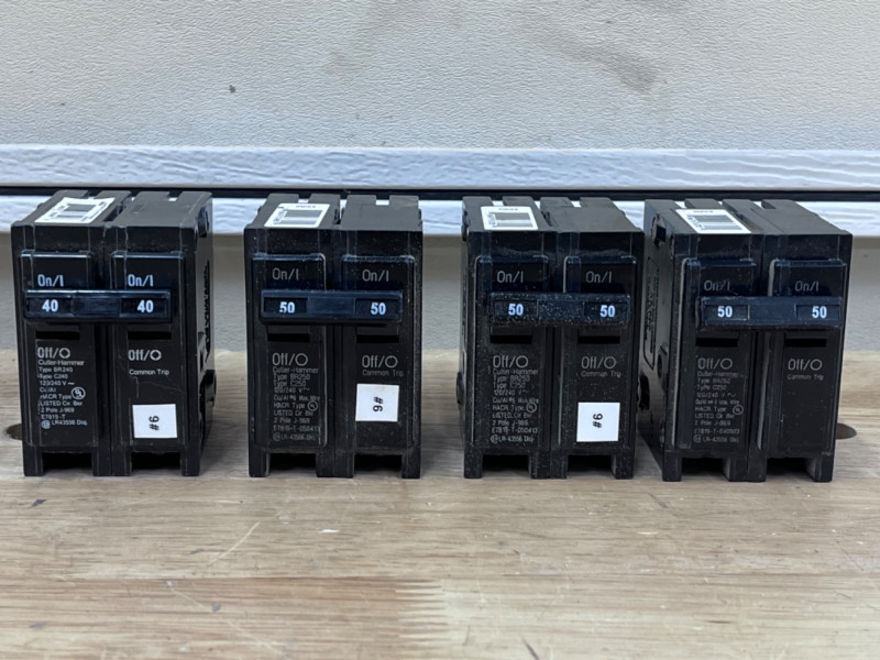 (4) Cutler-Hammer Double Pole 50 & 40 Amp Circuit Breakers 1- 40 amp Appear near new. Untested.