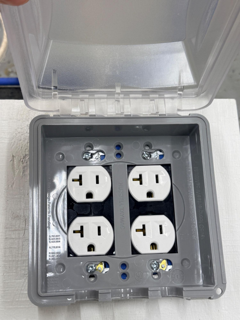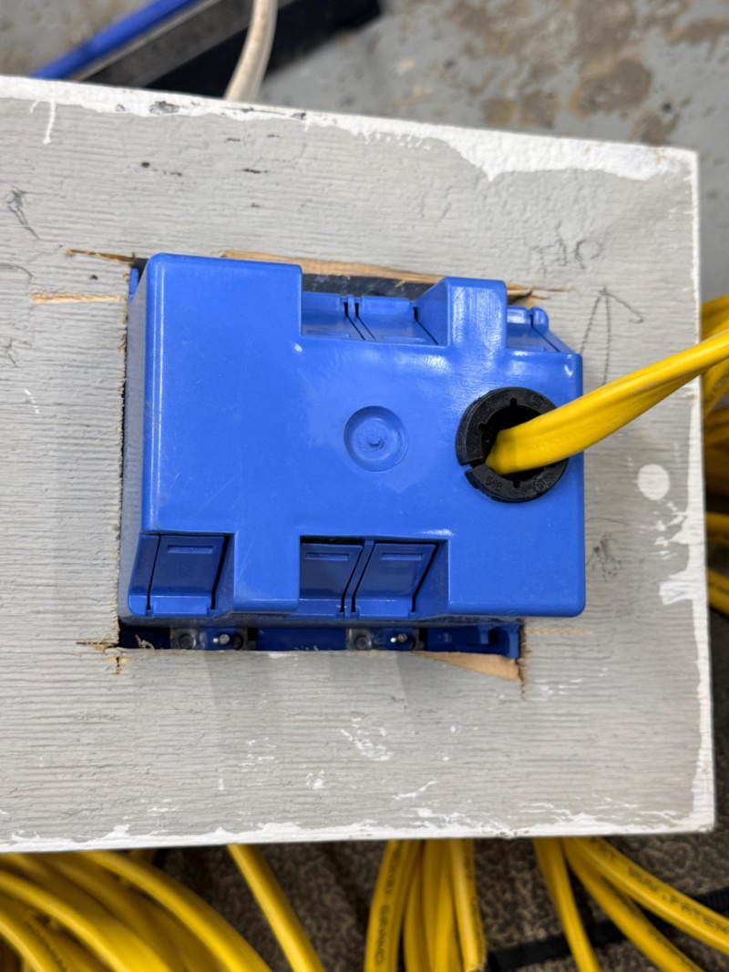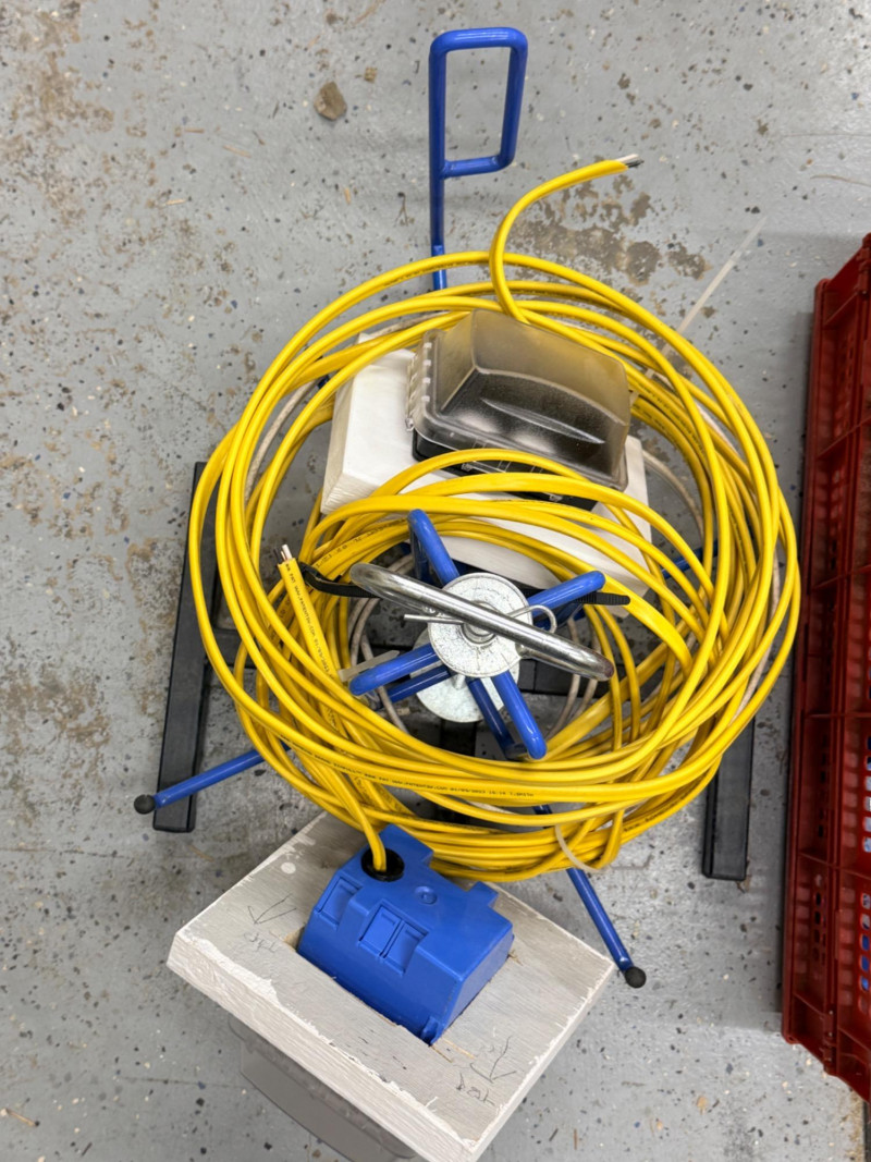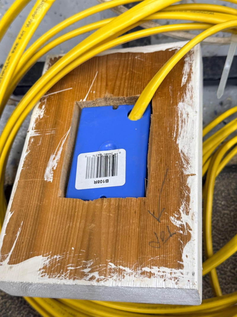 Wire Dispenser, Romex & Electrical Boxes -In and Out Spinning metal wire dispenser is 23”x16”x17” Wire is connected to the boxes which are mounted to a block of wood.