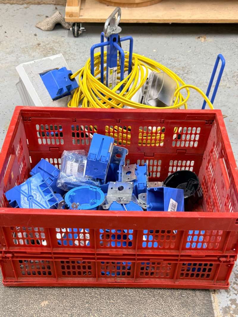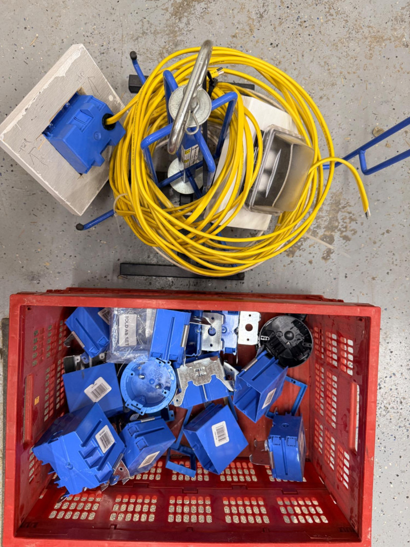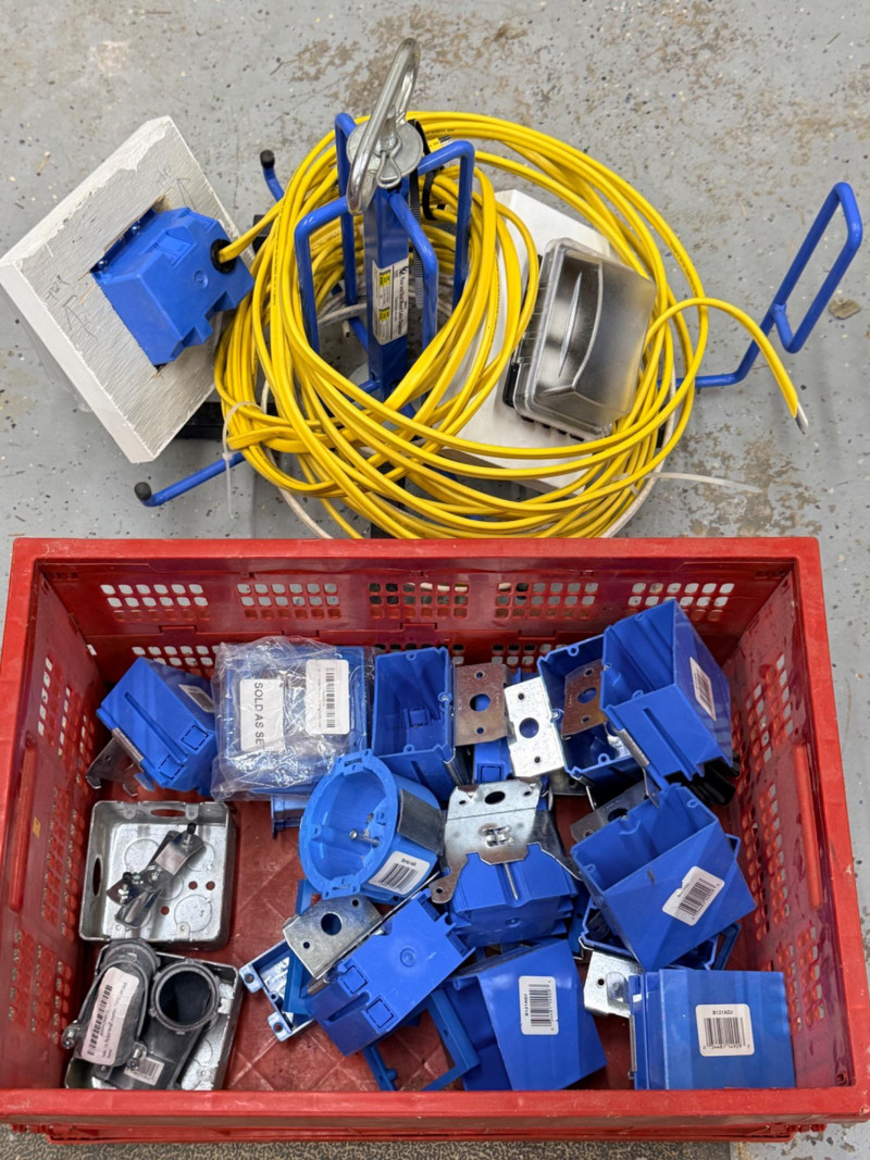 Lot # 157 - Wire Dispenser, Romex & Electrical Boxes -In and Out