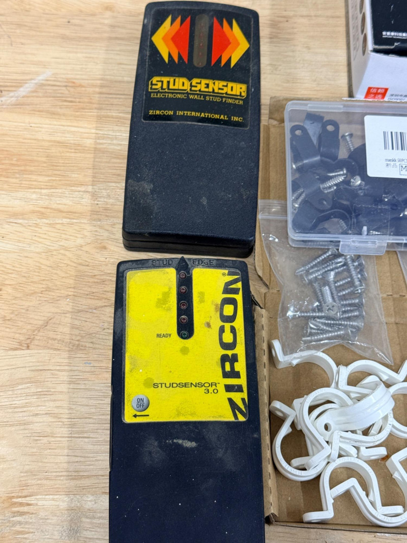 Lot # 164 - Stud Finders - Electrical Cable Connectors & Crimper, Staples & Covers