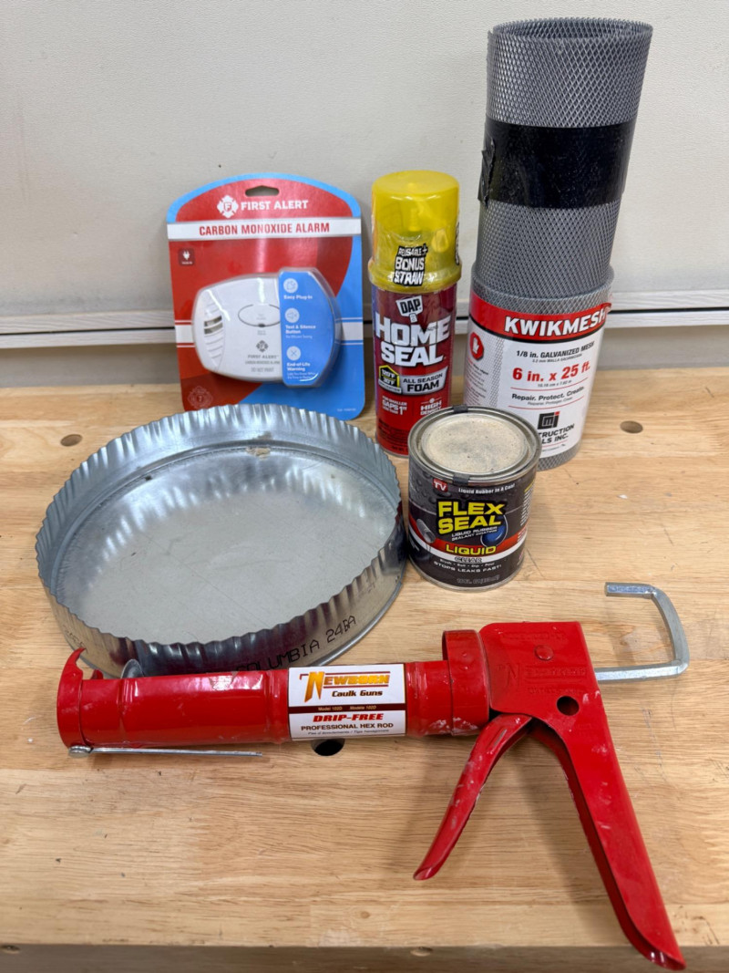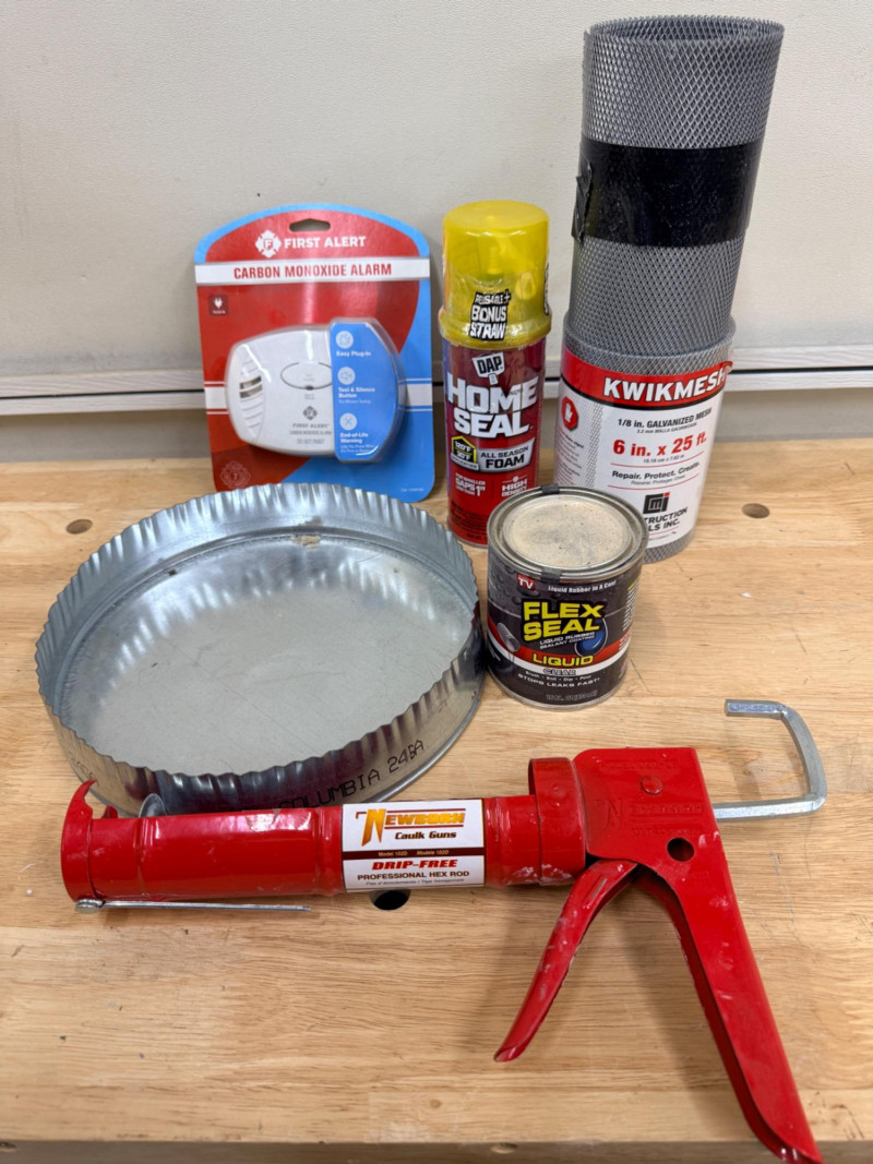 Lot # 169 - 6” Galvanized Mesh - CO Alarm - Home and Flex Seal - Caulk Gun