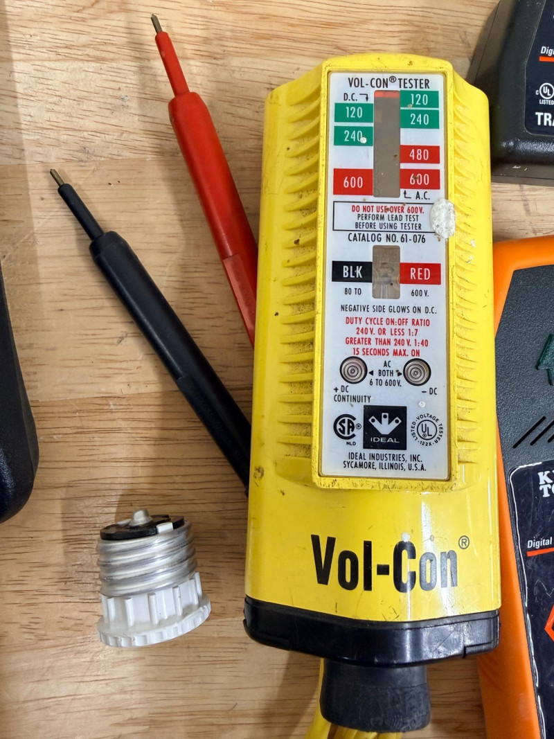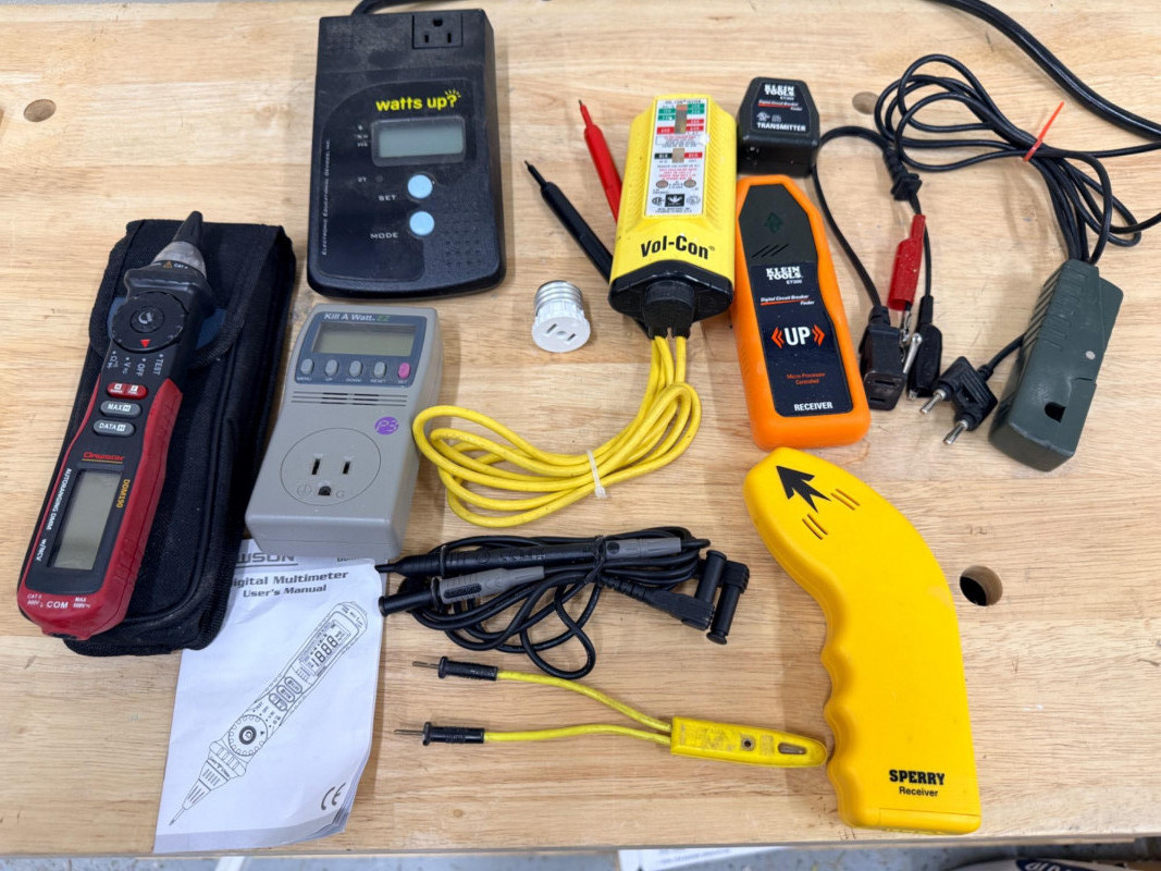 Electrical Testers - Multimeters - Watt Testers - Circuit Finder Volcon voltage tester DL235 T DiLog Digital Clamp Meter GCM-221 Gardner Bender Digital Clamp Meter Watts Up wattage tester Dawson Digital Multimeter Klein Tools Digital Circuit Breaker Finder Sperry Circuit Breaker Finder