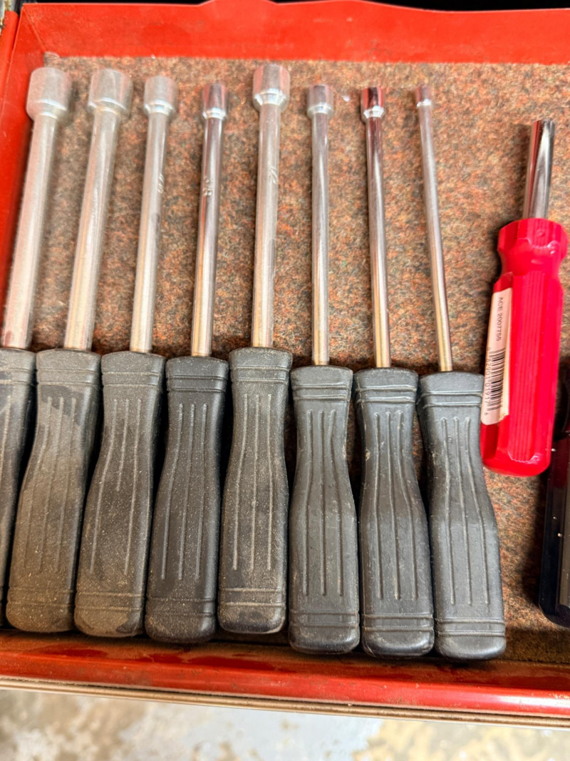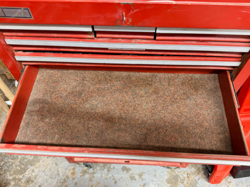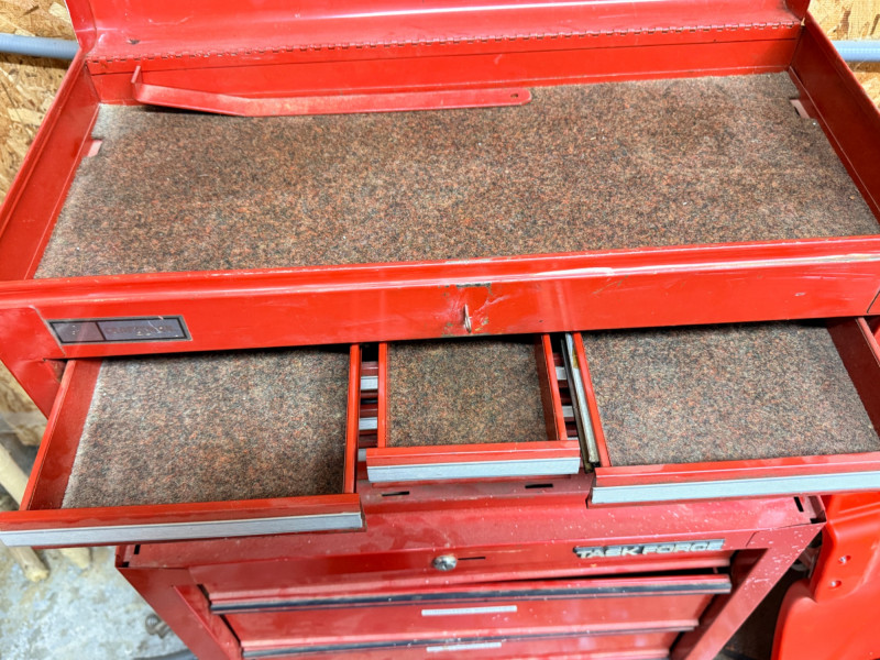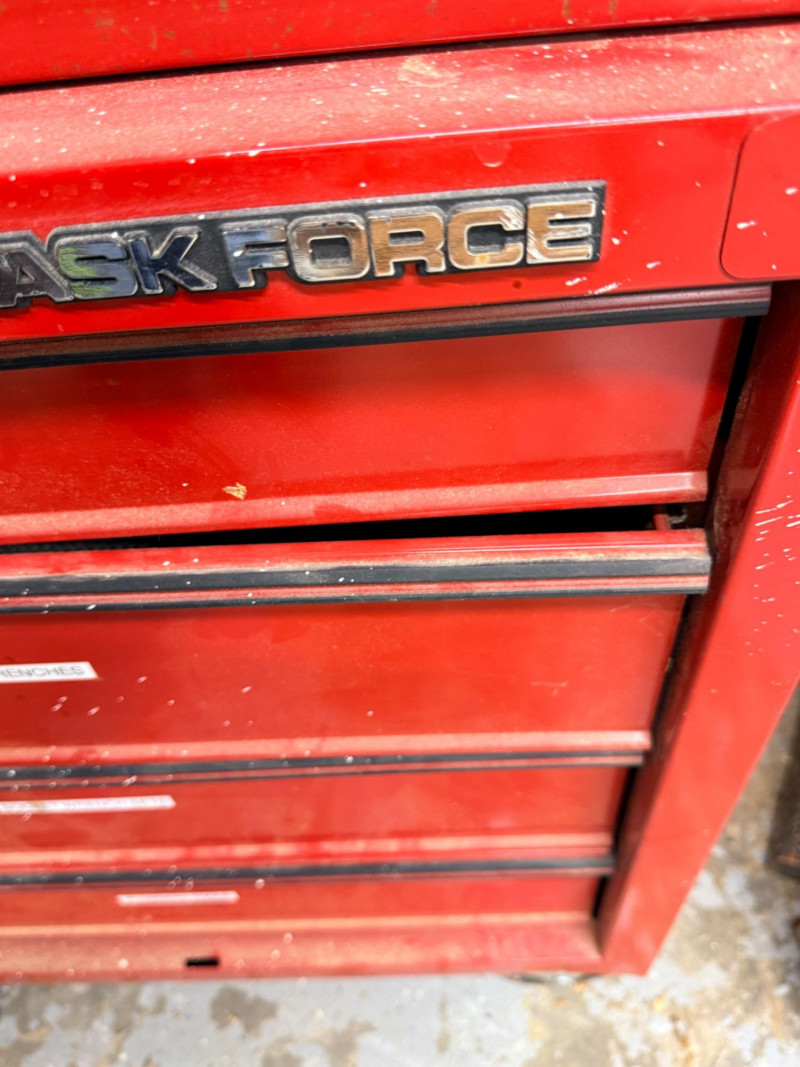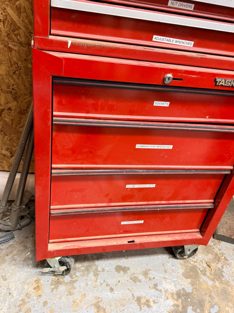Craftsman and Task Force Rolling Tool Storage Drawers Top is Craftsman bottom is Task Force. Comes with a full drawer of nut drivers. Locking wheels and lockable drawers. No keys and one drawer closes awkwardly. See pics.