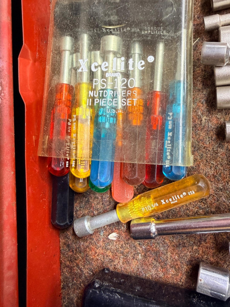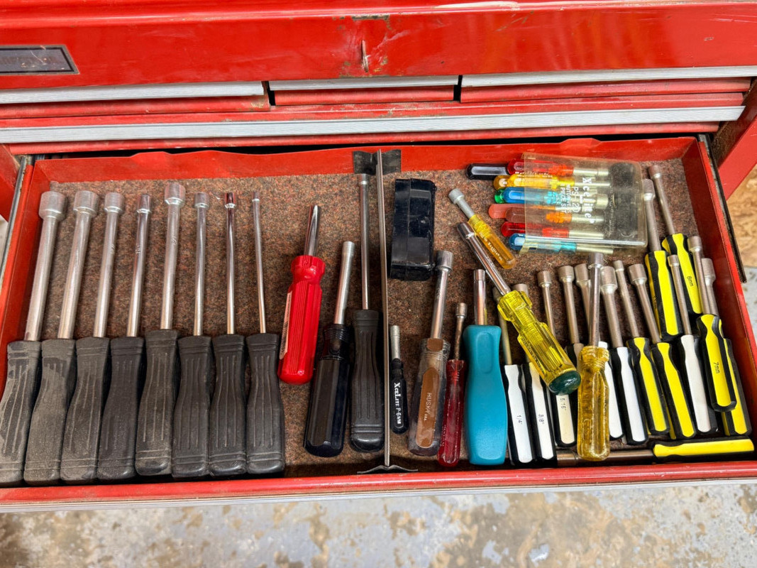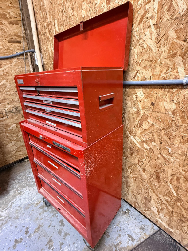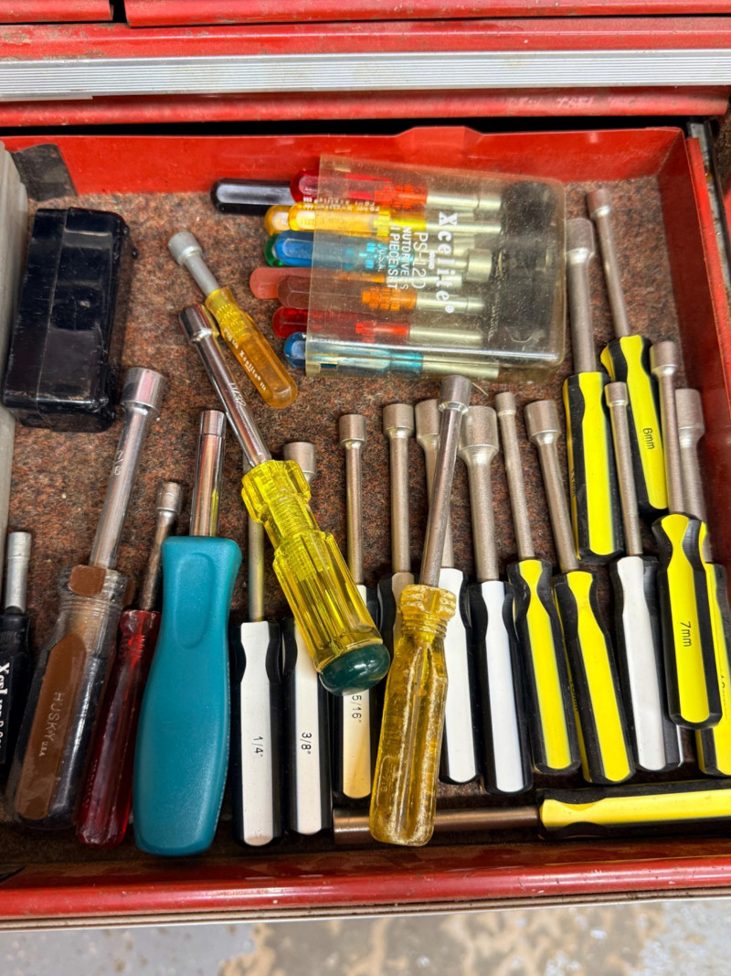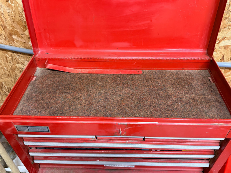 Craftsman and Task Force Rolling Tool Storage Drawers Top is Craftsman bottom is Task Force. Comes with a full drawer of nut drivers. Locking wheels and lockable drawers. No keys and one drawer closes awkwardly. See pics.