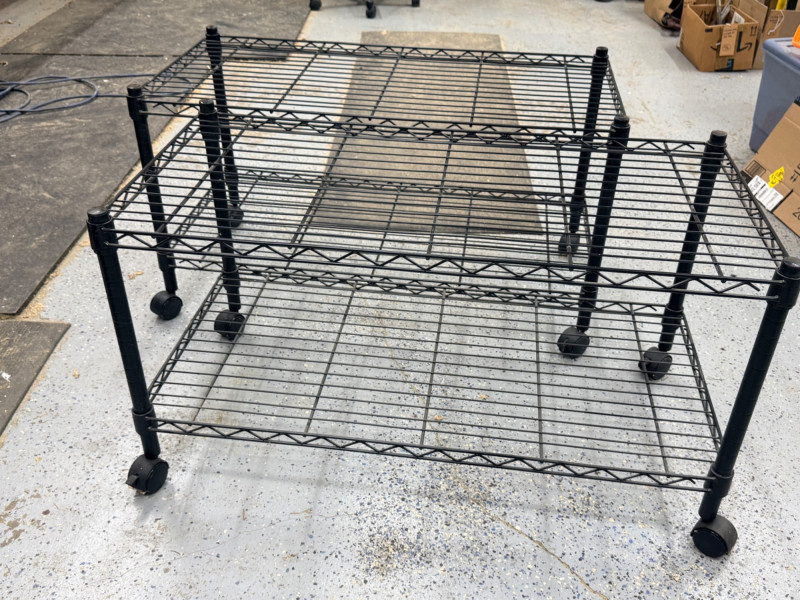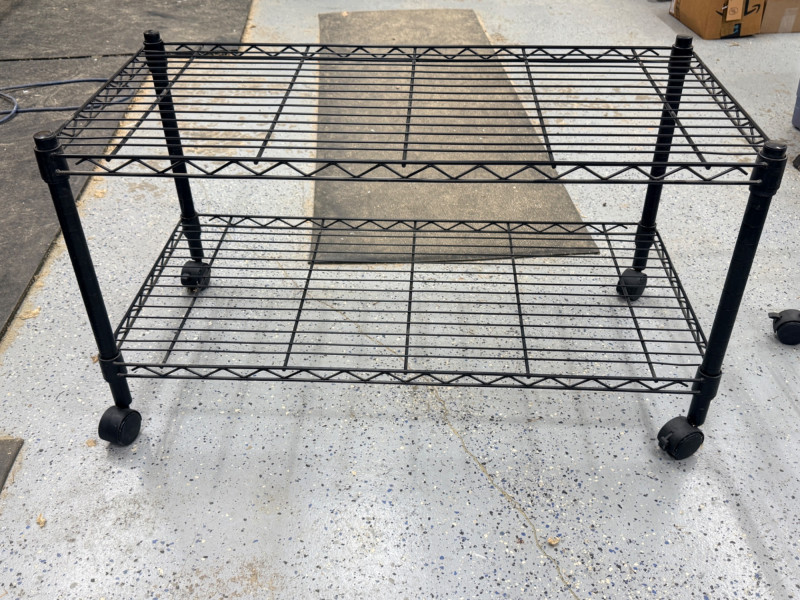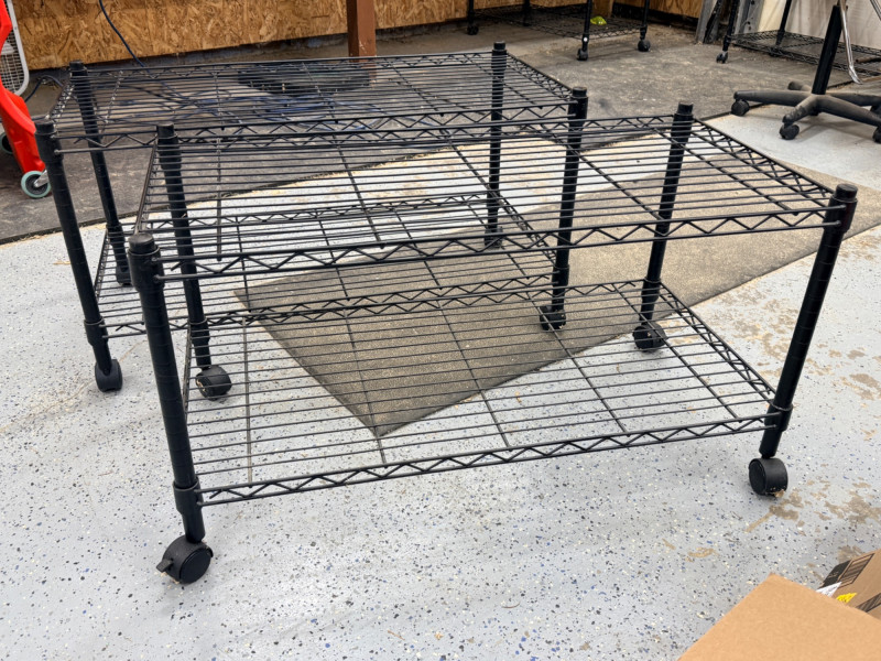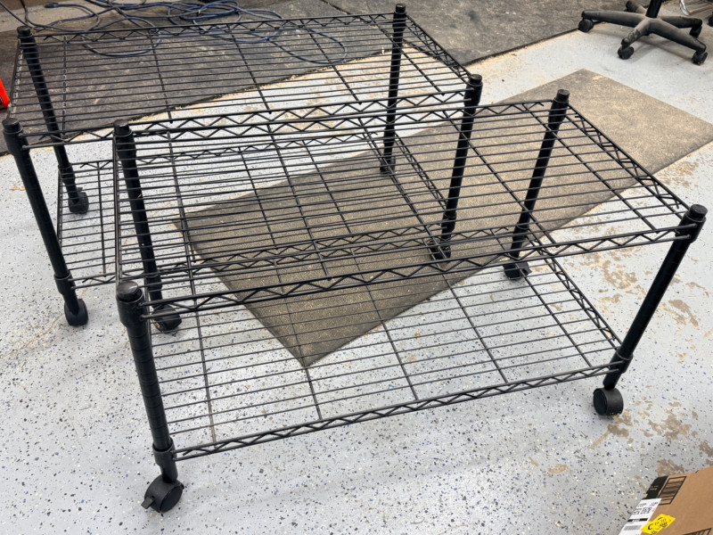 (2) Black Wire Rolling Carts 36”x18”x20” with locking swivel casters