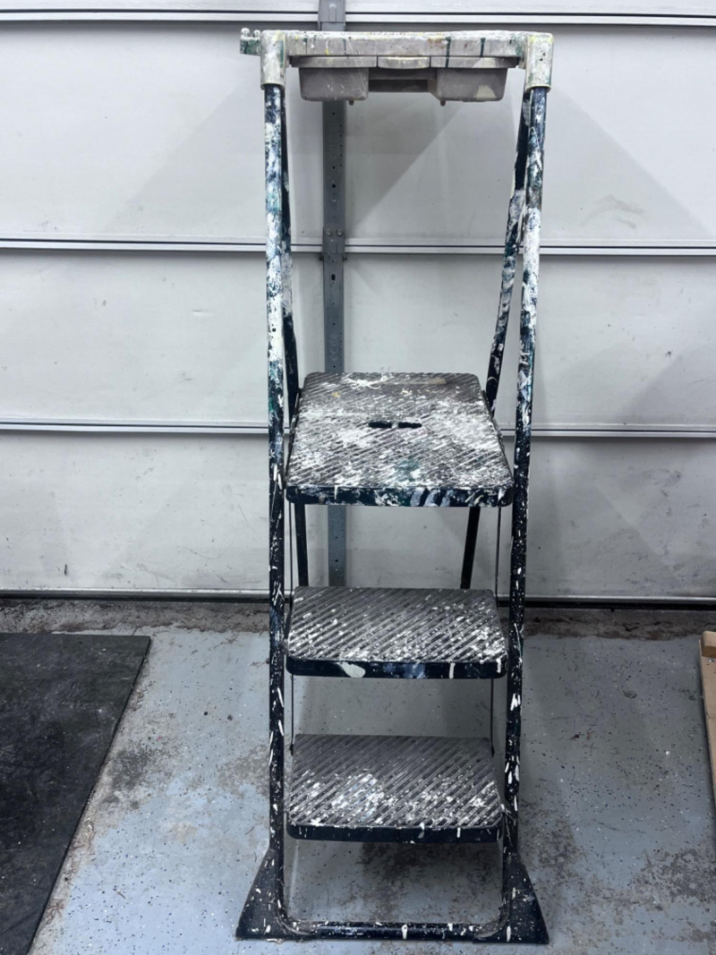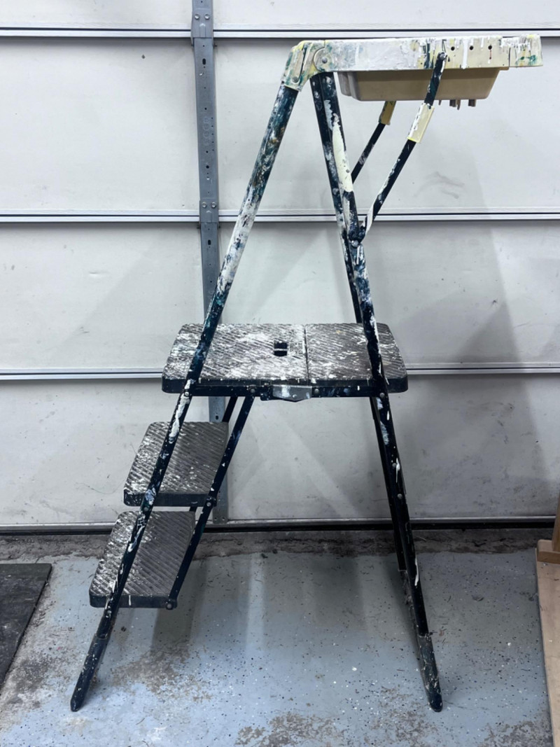 (3) Utility Ladders Trays on two of the ladders. Smallest is 24.5” tall. Tallest is 59.5” tall.
