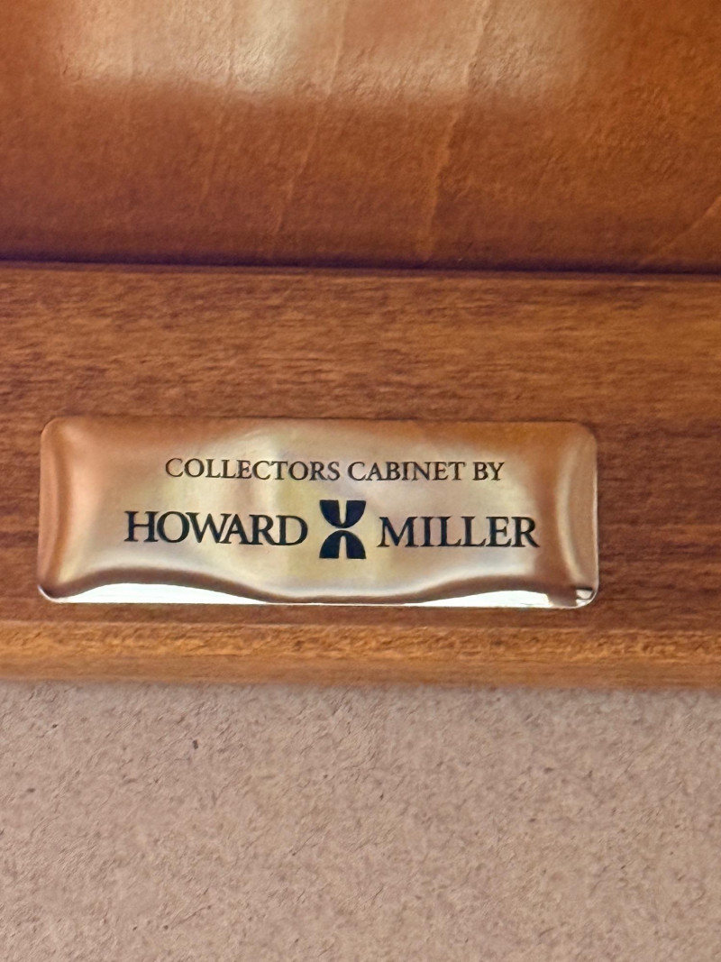 Howard Miller curio cabinet, specifically a collector's display case designed for showcasing valuables.