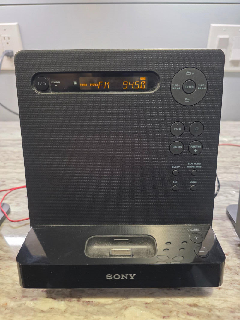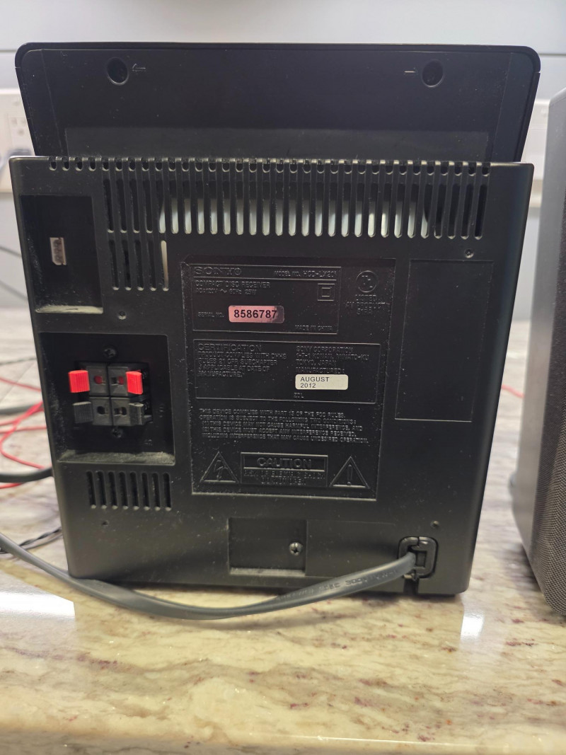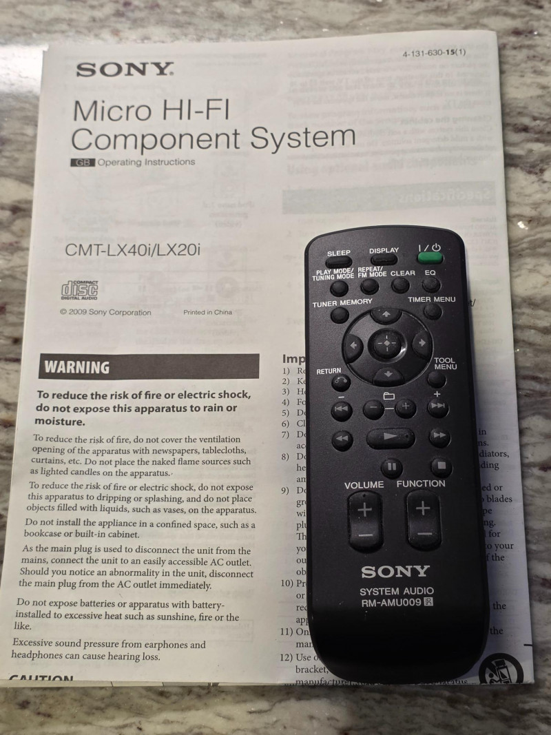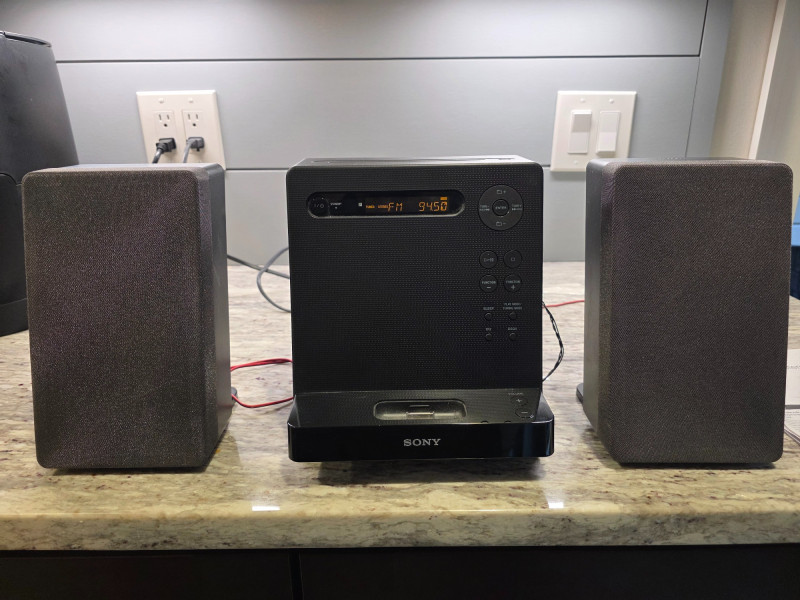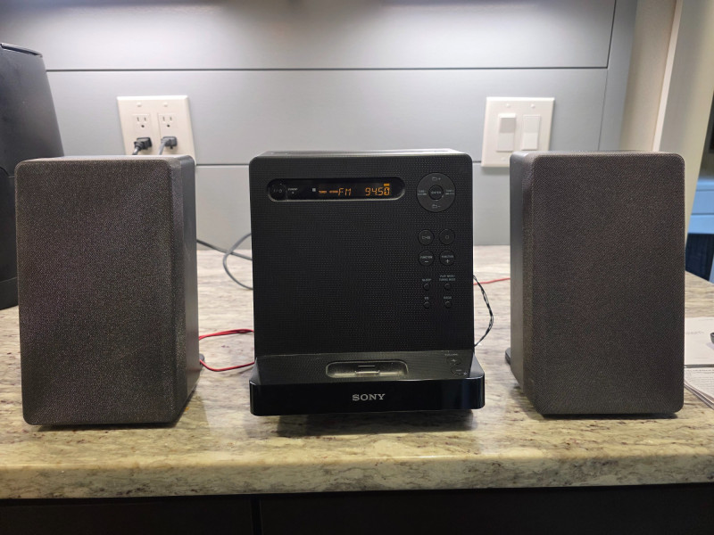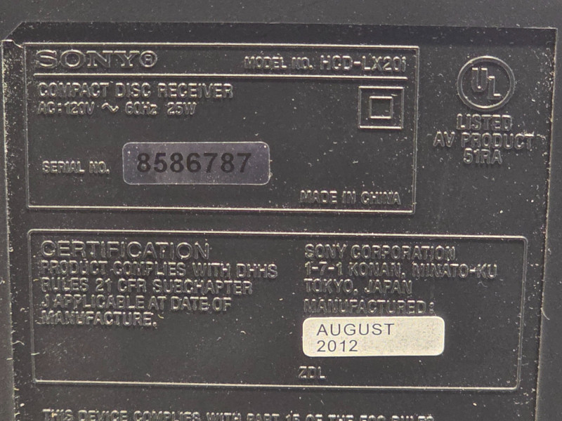 Sony Micro HI-FI Component System Sony Model #CMT-LX20i Manufactured August 2012 The Sony CMT-LX20i is a compact micro Hi-Fi shelf system featuring an integrated iPod dock, a single-disc CD player (supporting MP3 CDs), and an AM/FM radio tuner Includes remote, AM/FM wired antenna, power cord & manual Tested - Works Great! Stereo: 8.75"T x 8"W x 8"D Speakers: 8.75"T x 5"W x 5"D