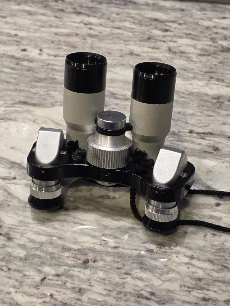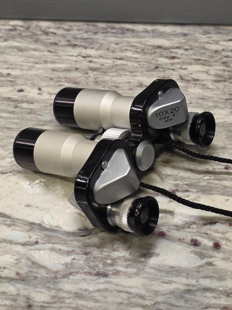 Vintage Tacan 10x20 Field 5° Binocular & Zipper Case Tacan 10x20 Field 5° Binocular is a collectible optical instrument made in Japan Tacan (likely an importer name for Japanese manufacturers) 10x magnification with 20mm objective lenses Compact, folding design often marketed for theatre, museum, or sporting events Features coated lenses to improve image brightness and reduce glare Field of View 5° Includes neck string & zipper case Tested - Works! 1.75"T x 3.75"W x 3.5"L