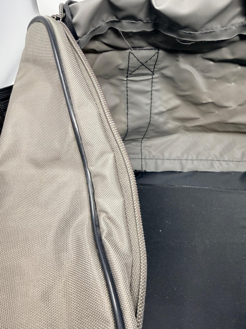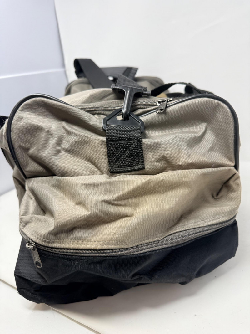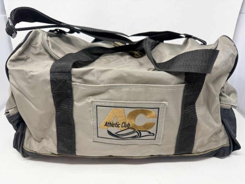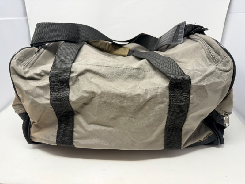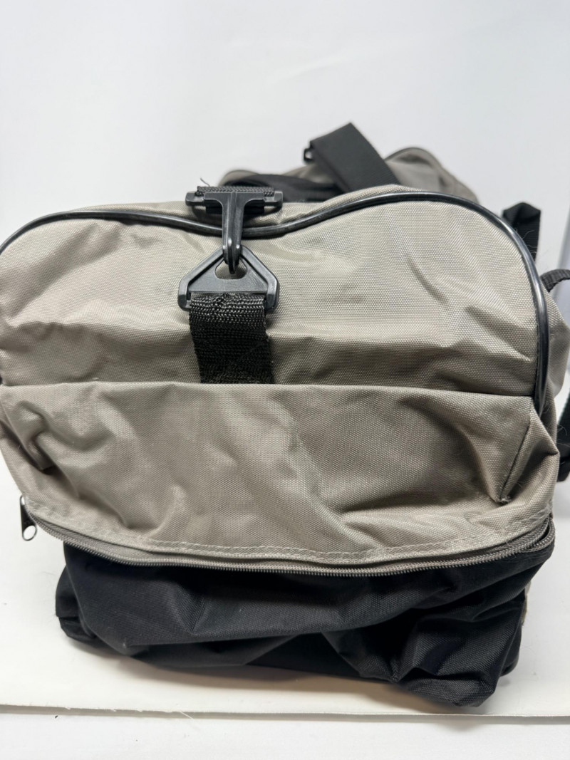 Athletic Club Waterproof Duffle & Himalayan Fanny Pack Duffle with 3 exterior zipper pockets and zip around top with double handles and shoulder strap. Gray water proof nylon and black accents. 17”x10”x10”