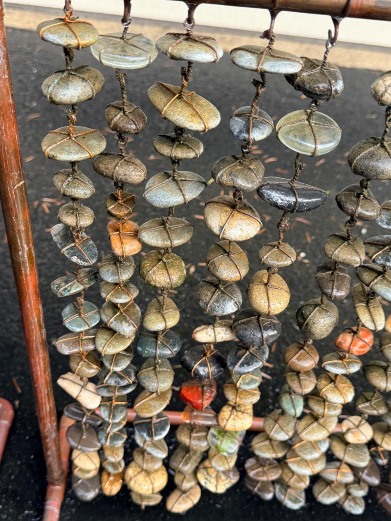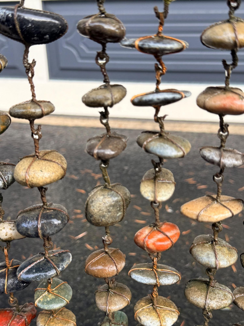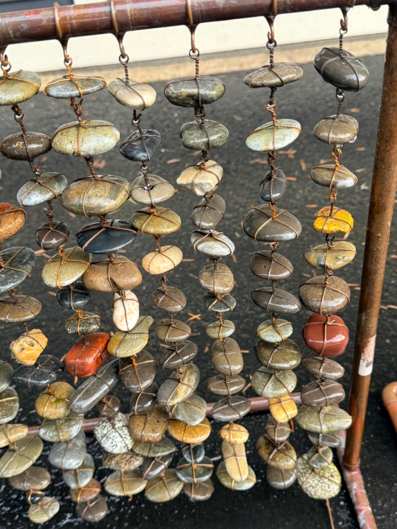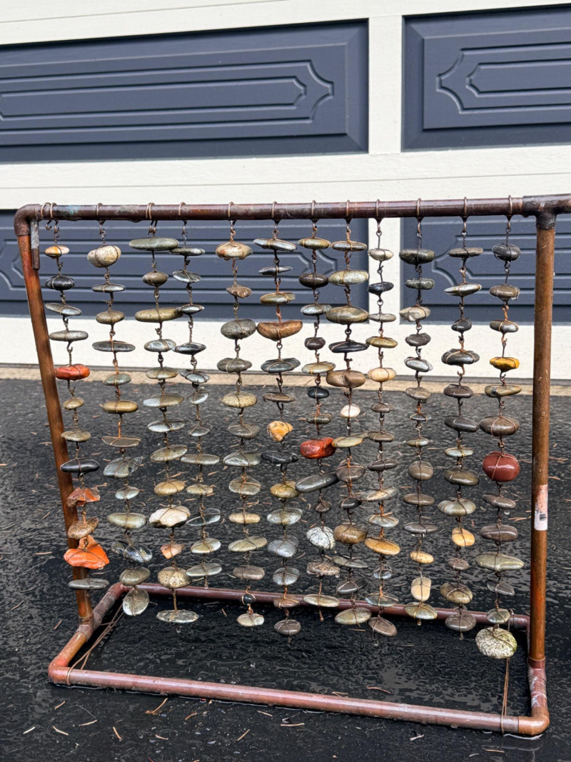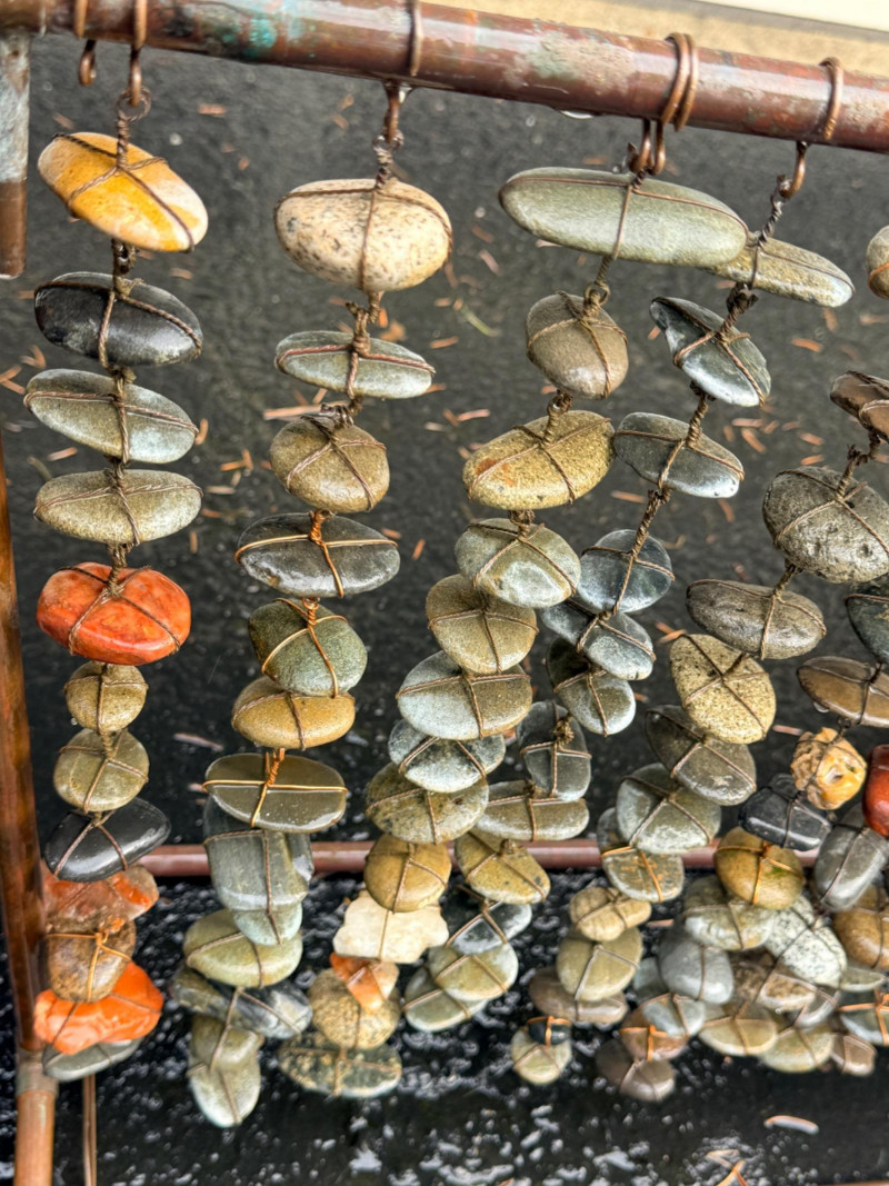 Copper tube frame with wire wrapped stones.