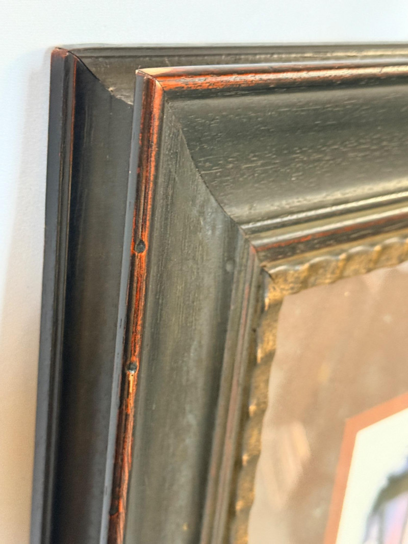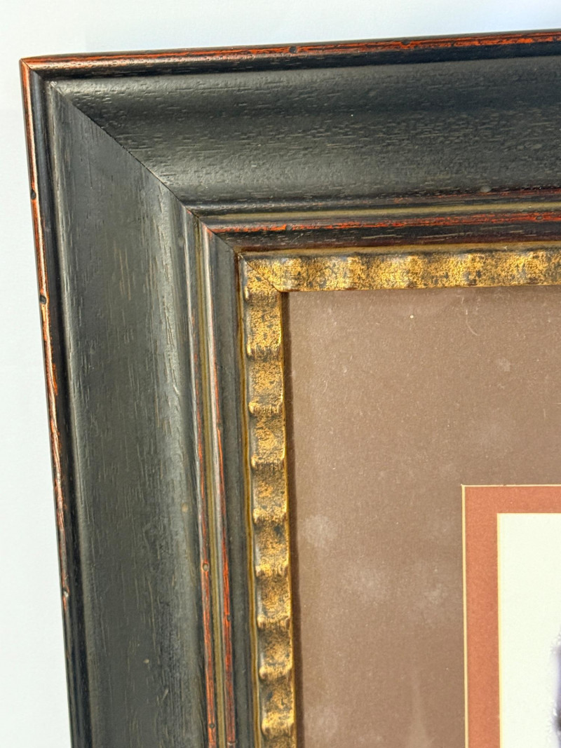 Dark brown wood framed, double matted under glass gate door print.