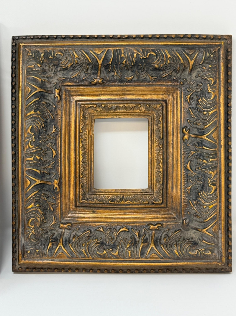 (2) Small Photo Baroque Style Wood Frames 10”x2.75”x10.75” OD and 3”x3.75” inside 9.25”x1.5”x10” OD and 2.75”x3.5” inside